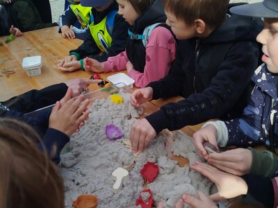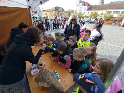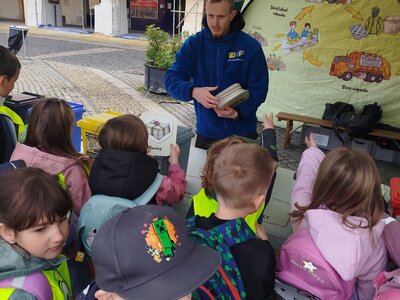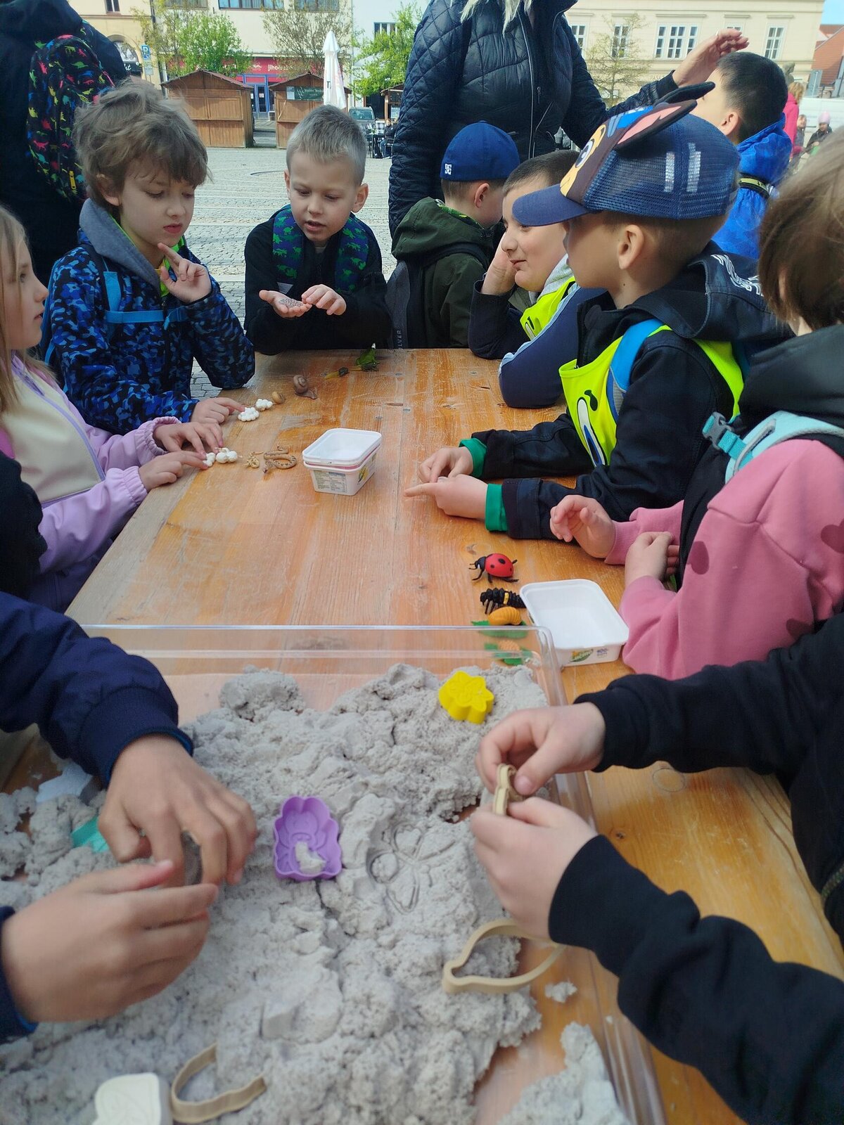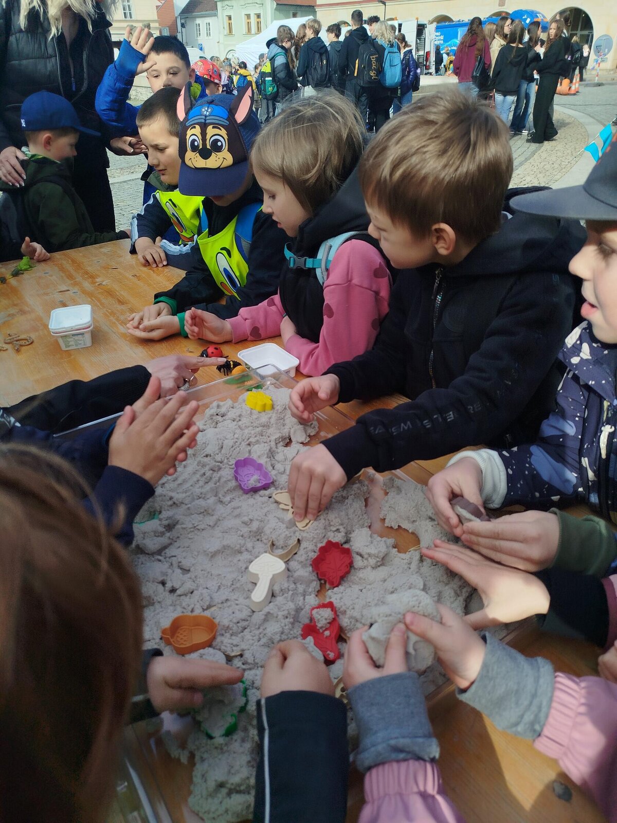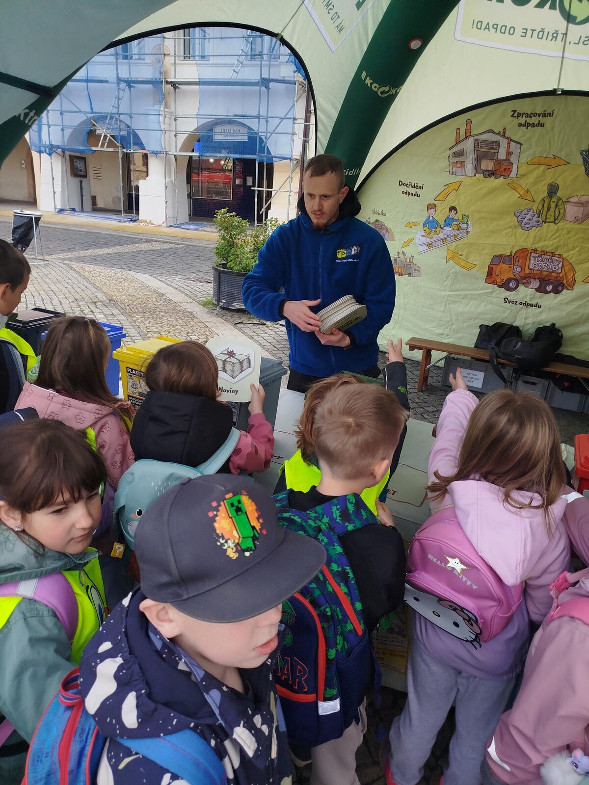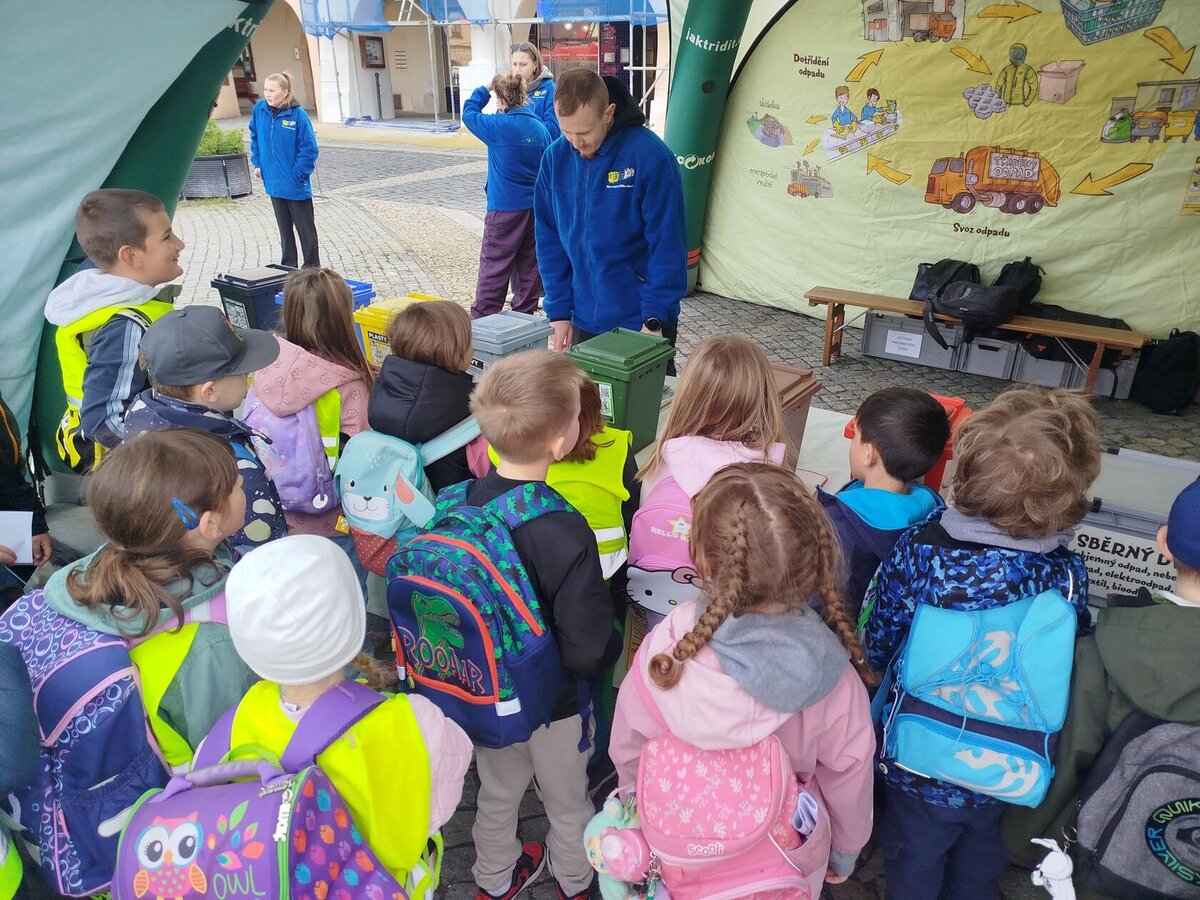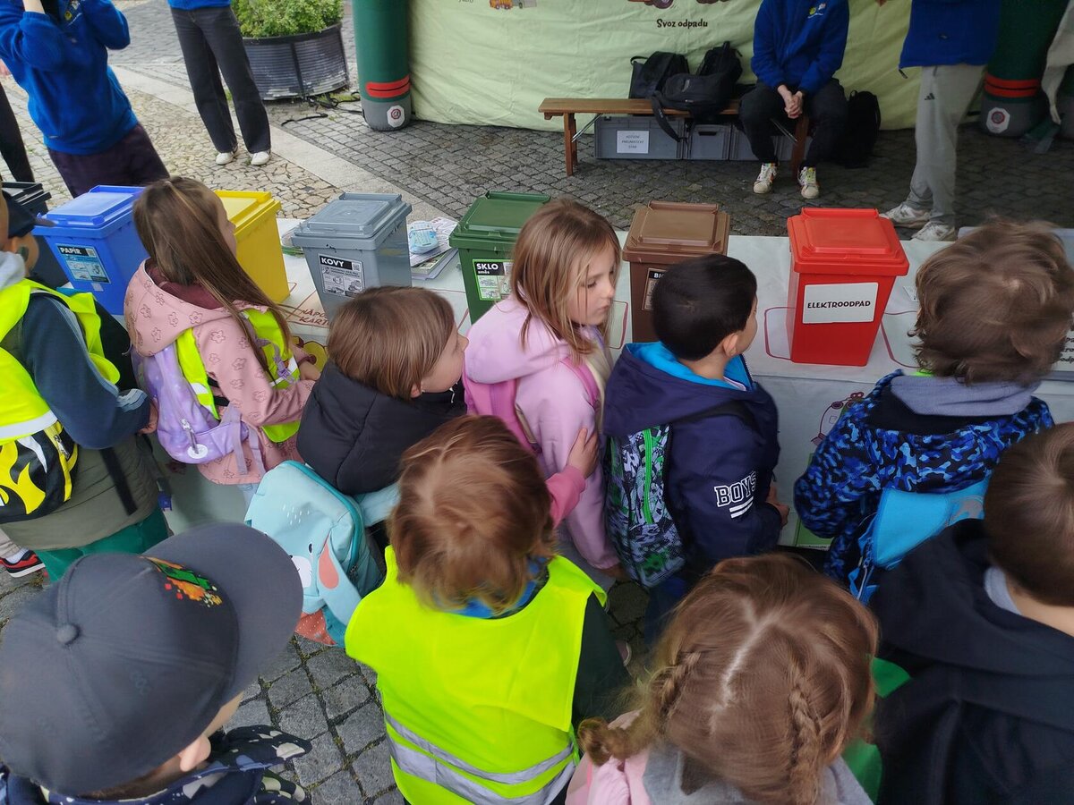 Na náměstí Míru v Mělníku jsme měli možnost navštívit aktivity a ukázky, jakým způsobem se likviduje, třídí a zpracovává odpad. Děti nahlédly do auta se speciální kamerou, kde pozorovaly myši a potkany, kteří žijí v kanálech, prohlédly si živé ryby a třídily výukové kartičky do správných popelnic a kontejnerů. Nejvíce děti zaujalo velké speciání auto na čištění velkých kontejnerů. V rámci vzdělávacího programu RMM si děti procvičily vývoj brouků a živočichů od vajíčkek až po dospělost.