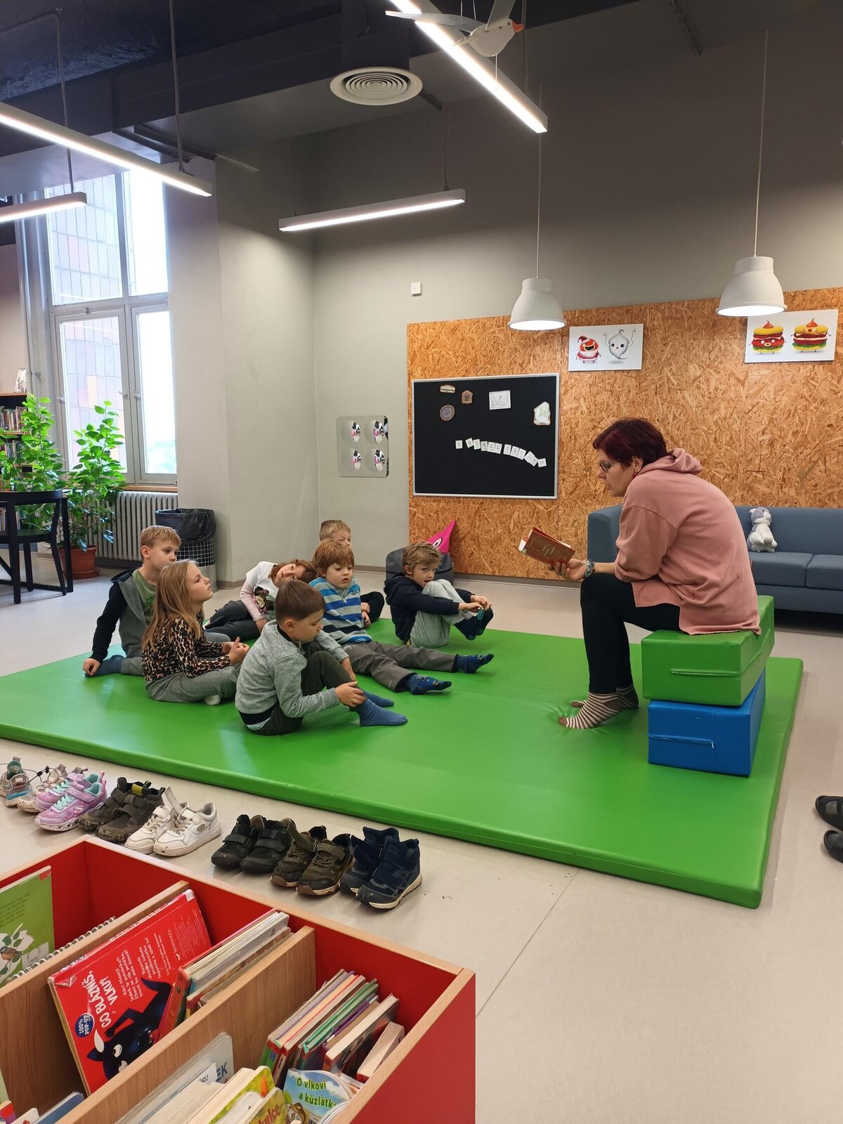 V polovině října jsme navštívili městskou knihovnu Mělník, kde nás provedla Mgr. Tereza Česáková inspirativní besedou ,, Co je velké a co malé?" Kdo jsi ty a kdo jsem já? Co je chvíle a co je dlouho? Poslechli jsme si pohádku - O kolečkách a nekonečnu. Existuje příběh, v němž se nic neděje? Můžeš být zárověň velký a malý? Tyto zdánlivé ,,nesmysly" nás provedly světem koleček a nekonečna, pomohly nám roztřídit věci kolem nás.