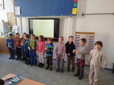 Žáci z přípravné třídy navštívili své kamarády v 1. A třídě na základní škole. Děti měly možnost nahlédnout do opravdové výuky, prohlédnout si třídu a vyzkoušet si některé školní aktivity. Prvňáčci se pochlubili, co všechno se už od začátku školního roku naučili. Společně si také zazpívali písničku a splnili krátký zábavný úkol. Návštěva proběhla v přátelské atmosféře a pomohla dětem z přípravné třídy odbourat obavy z nástupu do 1.třídy. Už teď se těší, až i ony usednou do školních lavic jako opravdoví školáci. Děkujeme p. uč. Mgr. Renatě Plodíkové a jejím úžasným prvňáčkům za zdařilou prezentaci školního dne na základní škole.