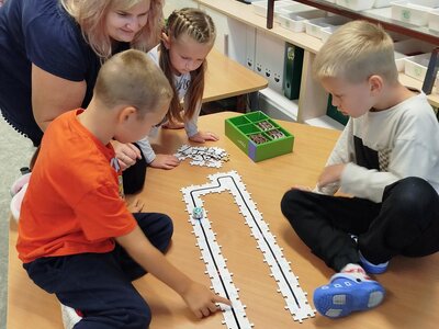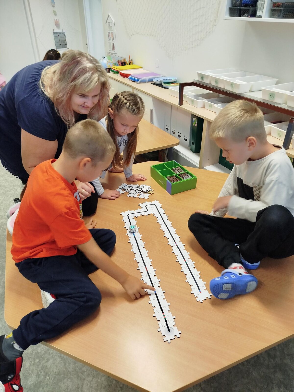 Robotika se dá hezky přiblížit i dětem v mladším věku, jak dokázala svým výukovým programem ing. K. Macurová ve své prezentaci před dětmi z přípravných tříd. Nešlo o technické vysvětlování, ale spíše o praktické ukázky moderních technologií. Nejprve děti s nadšením pozorovaly, jak robot dokáže kreslit na tabuli dle pokynů na dálkové ovládání. Pak následovalo seznámení dětí s malými chytrými roboty - ozoboty. Děti spolupracovaly ve dvojicích, postavily si z puzzlí dráhy dle své fantazie. S velkým zájmem pak pozorovaly roboty, jak projíždí po dráze a plní různé příkazy.