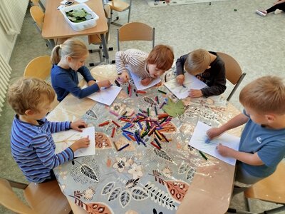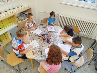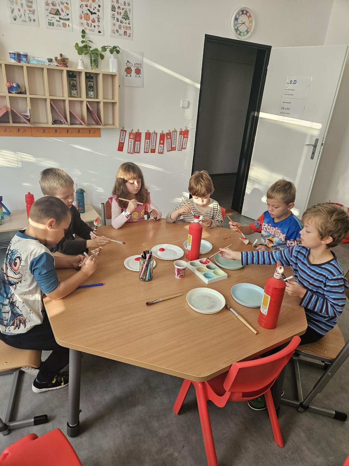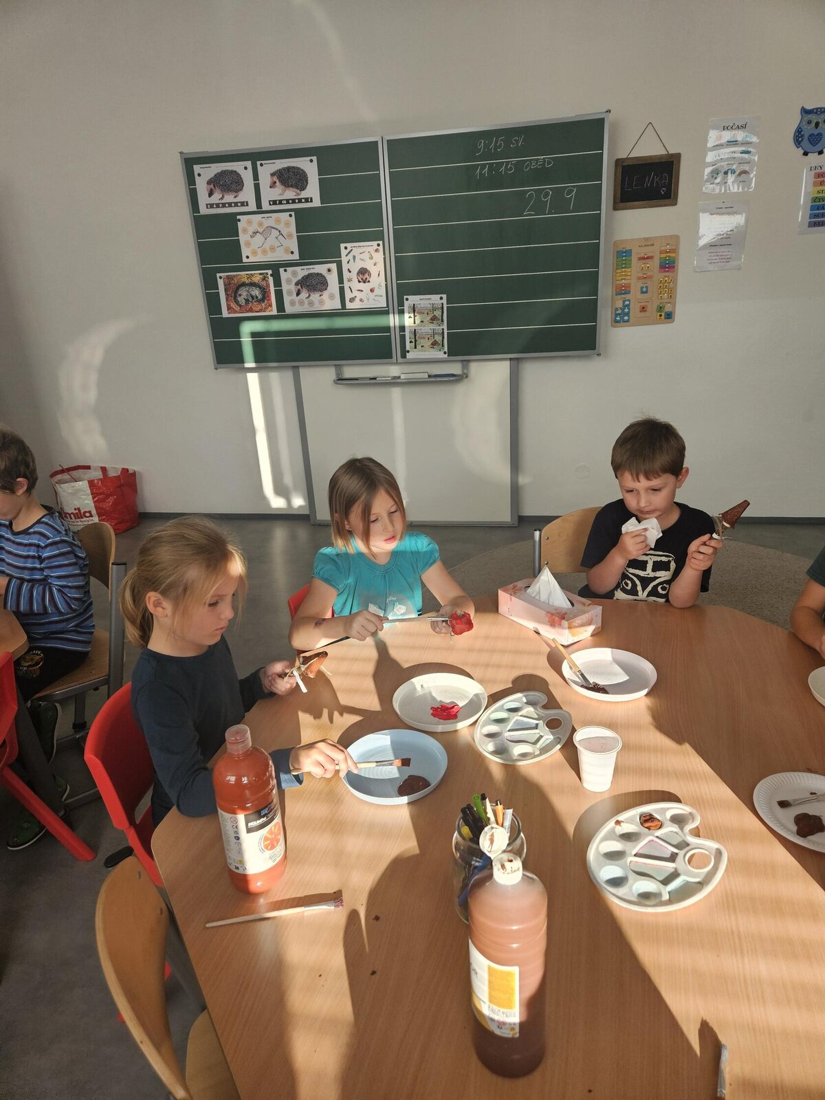 Podzimní dílničky jsou ideální k rozvoji tvořivosti, jemné motoriky a spolupráce mezi dětmi. Děti postupně navštívily všechny třídy 0.A, 0.B, 0.C, 0.D, kde vytvářely výrobky, které si připravila p.uč. s p. asistentkou. Nabídka se skládala z jednoduchých technik - frotáže podzimních listů, skládání ježků, vystřihování a zdobení sovy a tvoření houbičkových skřítků. Dílničky děti bavily a ze všech výtvorů měly radost.