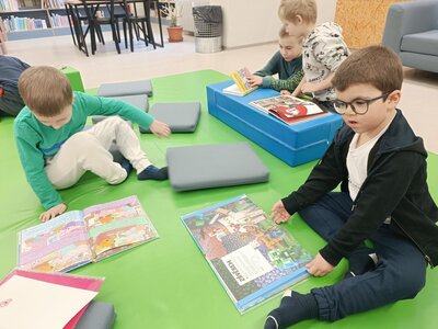 Poté jsme si prohlíželi knížky podle vlastního výběru. Po cestě zpět jsme si dali svačinku na čerstvém vzduchu a hurá zpátky do přípravky.