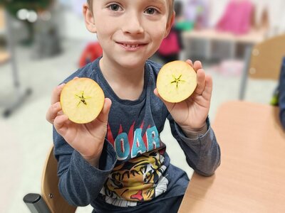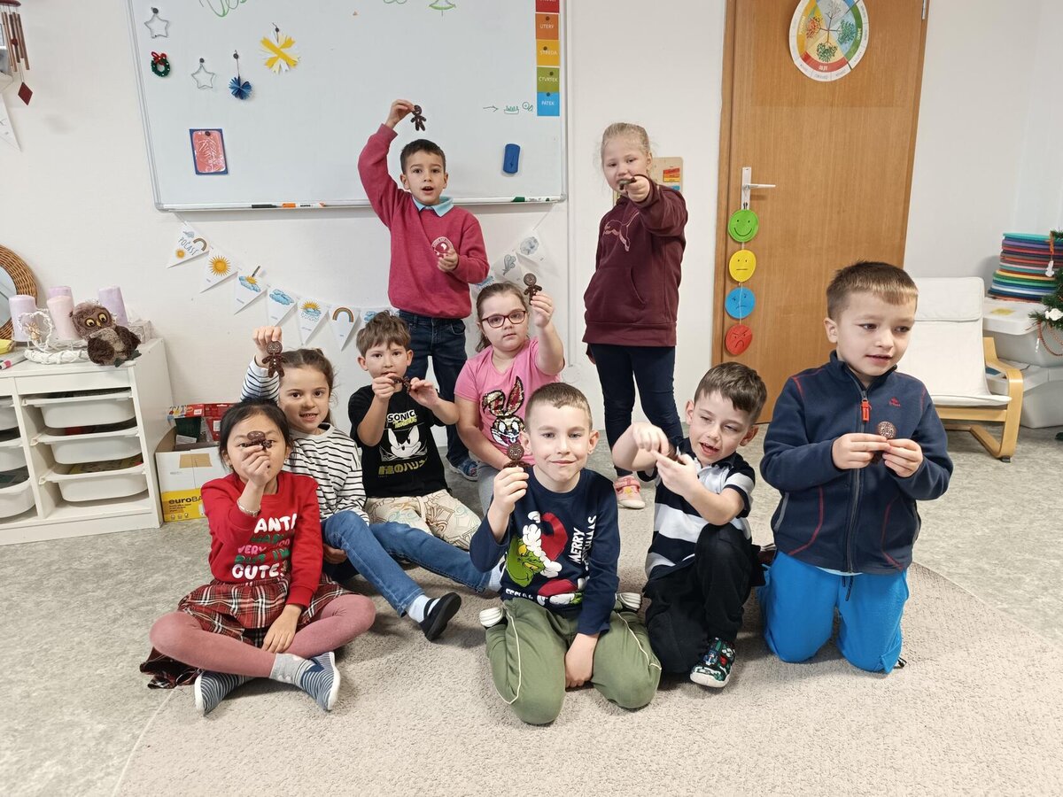 Nezapomněli jsme ani na oslavu – s kamarádem jsme ve třídě oslavili narozeniny. Každý den jsme si povídali o vánočních zvycích a některé z nich jsme si také společně vyzkoušeli. Poslední školní den čekalo na děti milé překvapení: nová kasa na hraní do obchůdku a perníček vytištěný na školní 3D tiskárně.