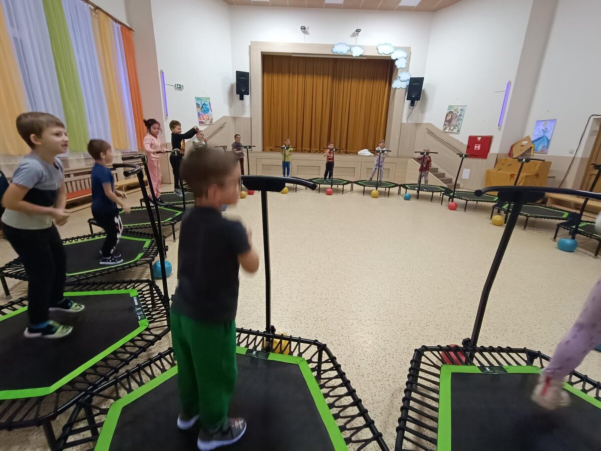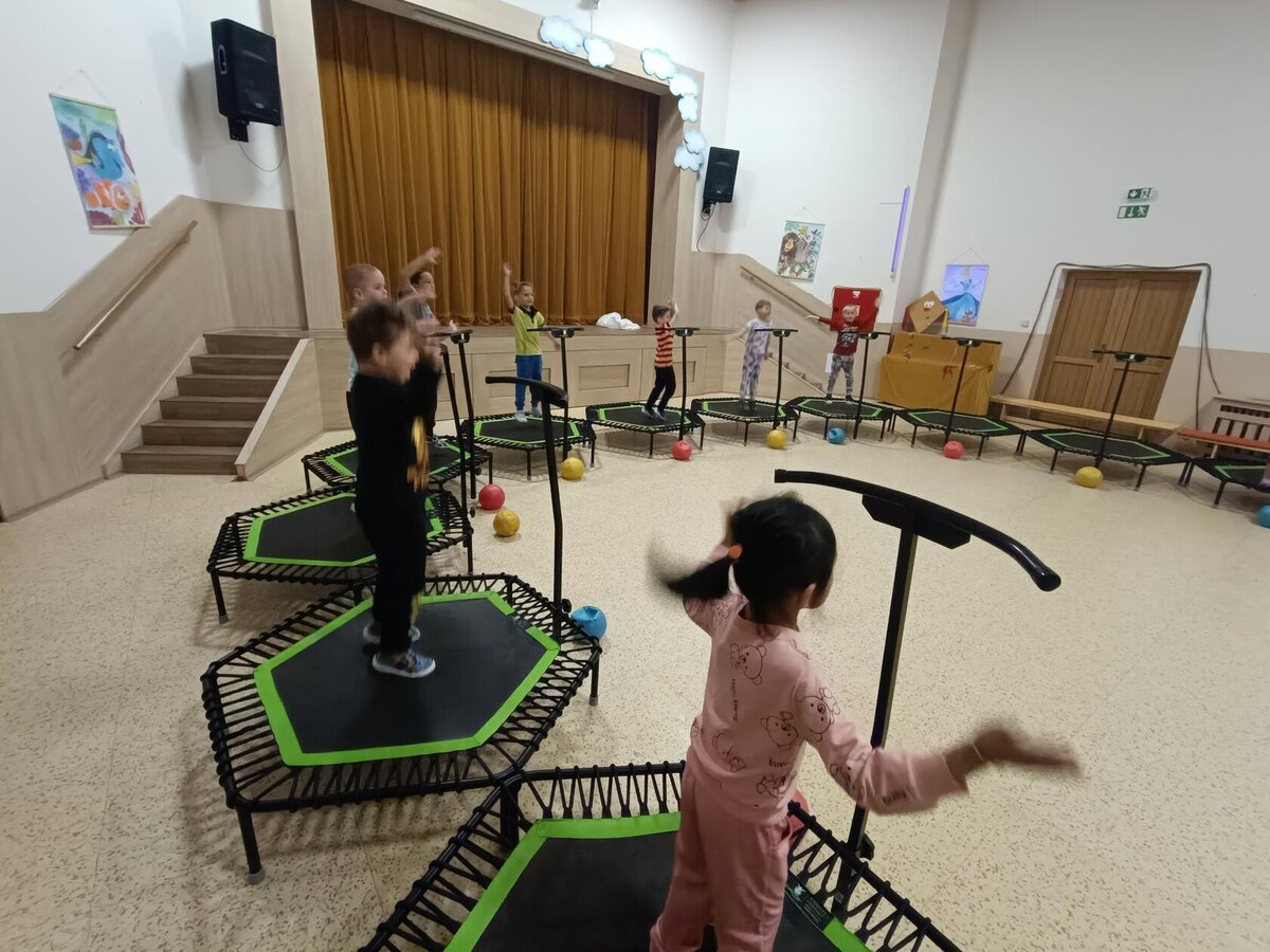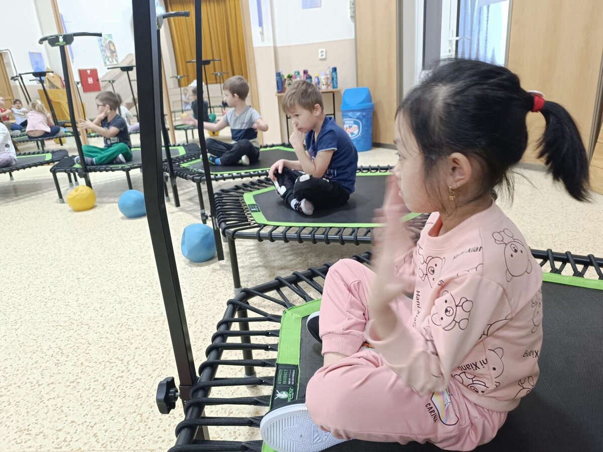 Máme za sebou první lekci trampolín v DDM. Děti si ji moc užily - bavilo je skákat do rytmu, hrát různé hry, přebíhat po trampolinách dokola a dokonce skákat skoro ve tmě - to na nich vše bílé pěkně svítilo.