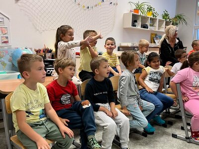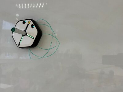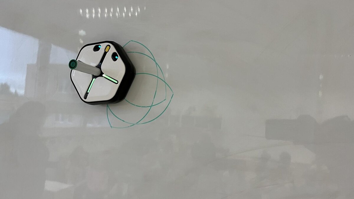 Součástí dopoledního programu byla také ukázka robota, který umí kreslit na tabuli. Děti s nadšením pozorovaly, jak robot dokáže s přesností kreslit tvar kruhu nebo "kytičky", a viděly tak, že i ve světě techniky se může spojit zábava s učením.