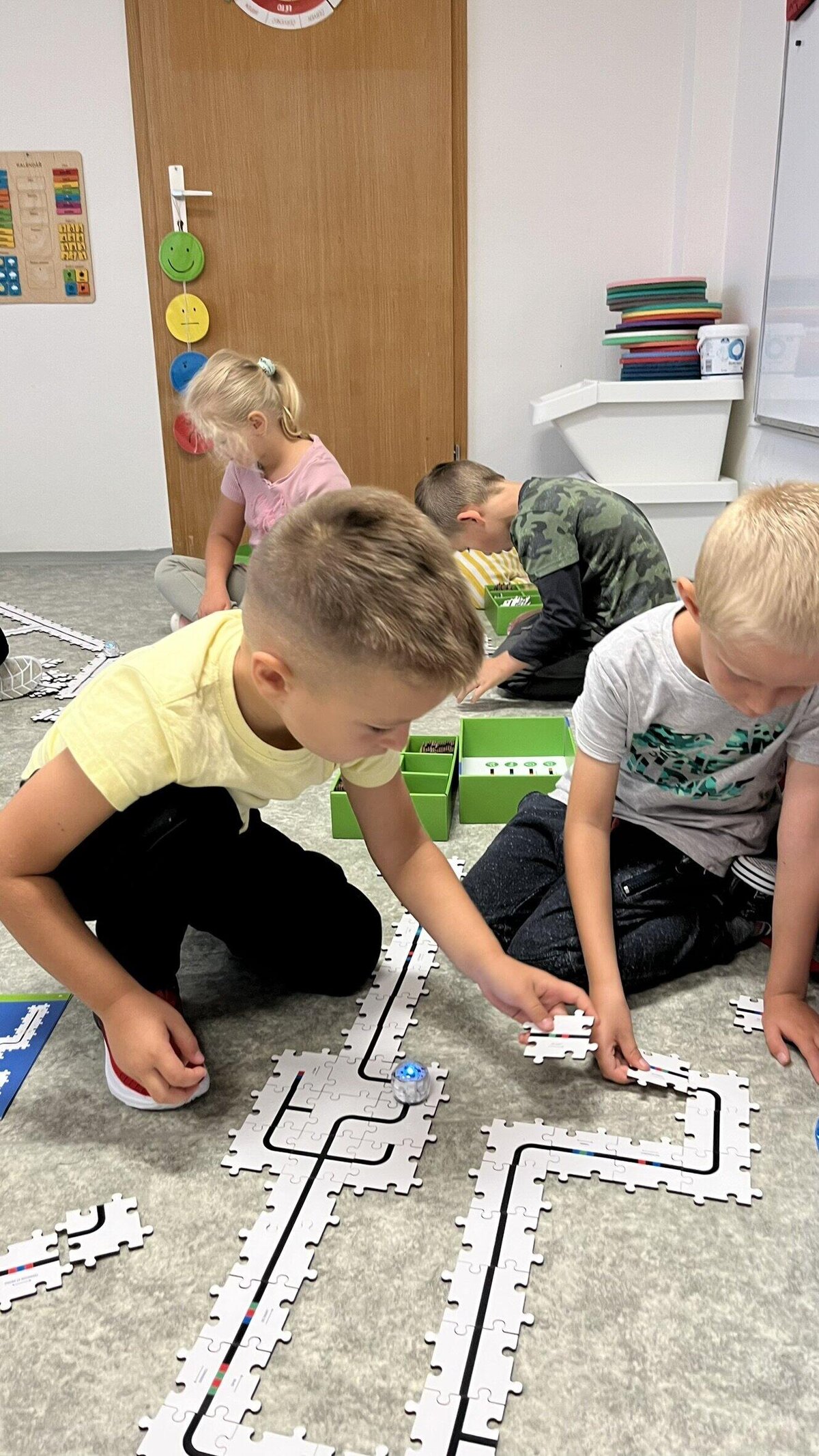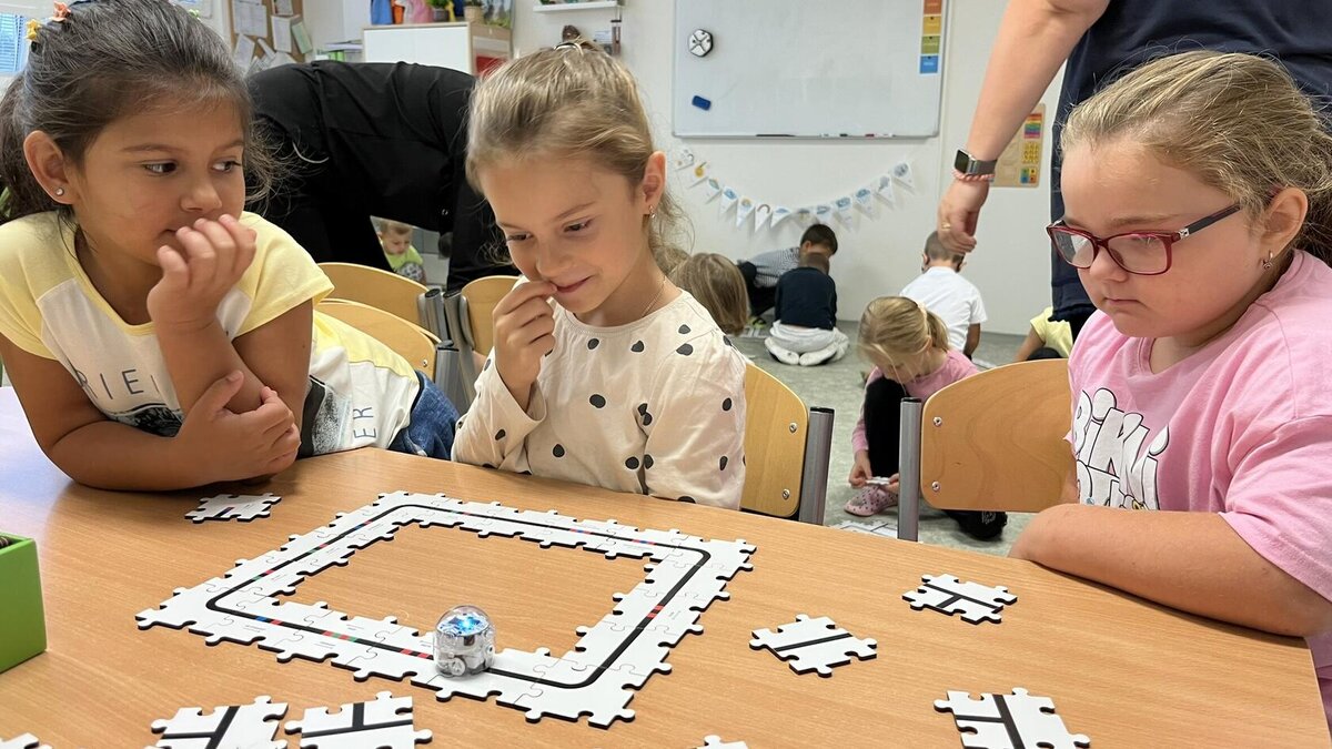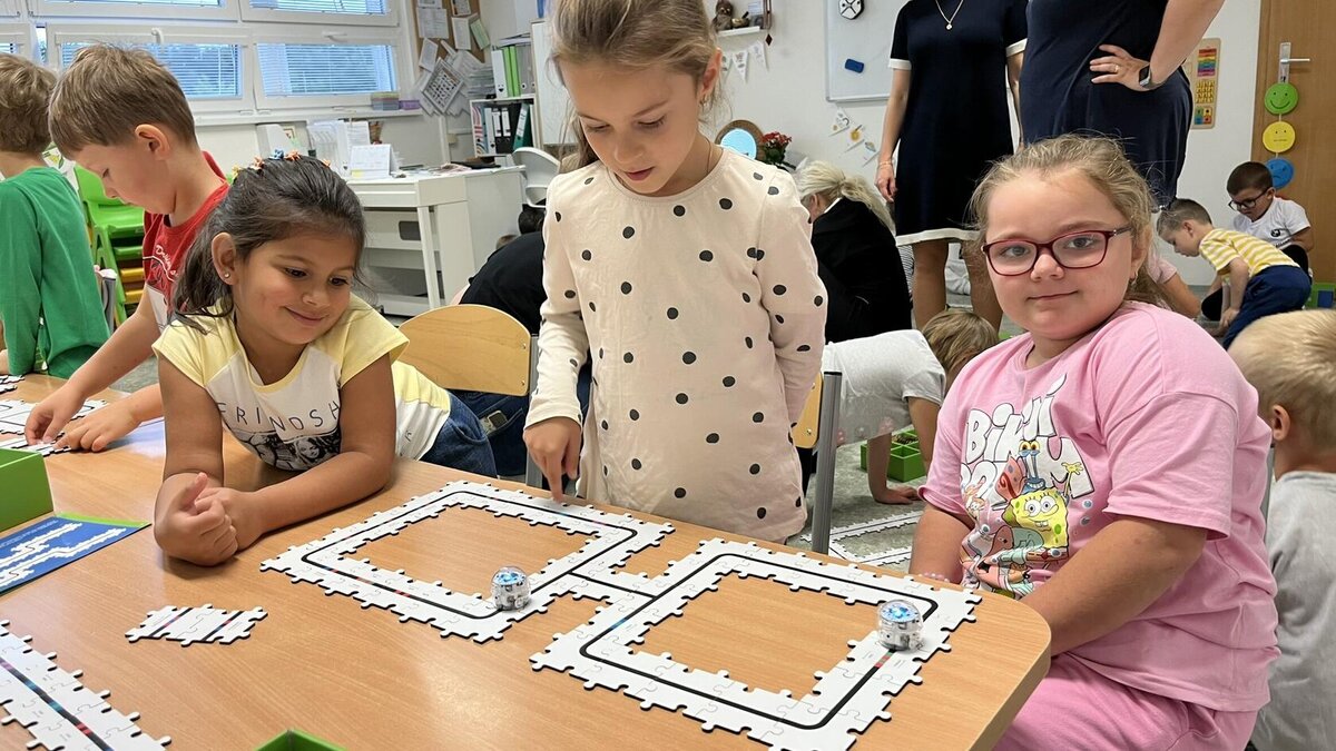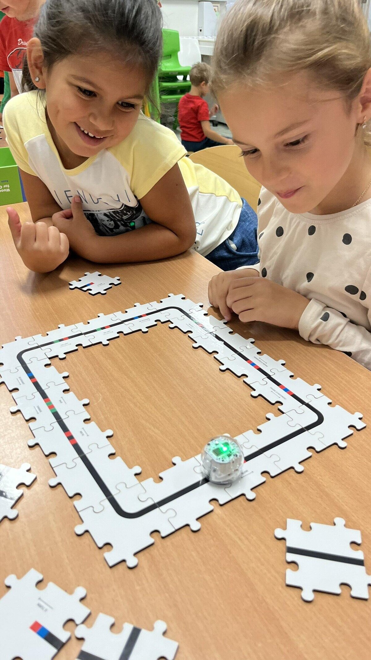 V pondělí jsme měli přípravných třídách zajímavou ukázku moderních technologií. Děti se seznámily s ozoboty – malými chytrými roboty, kteří dokážou jezdit po dráze sestavené z puzzlí. Žáci si vyzkoušeli stavět vlastní trasu z barevných puzzlí a s radostí sledovali, jak po ní ozobot projíždí a plní různé příkazy.
