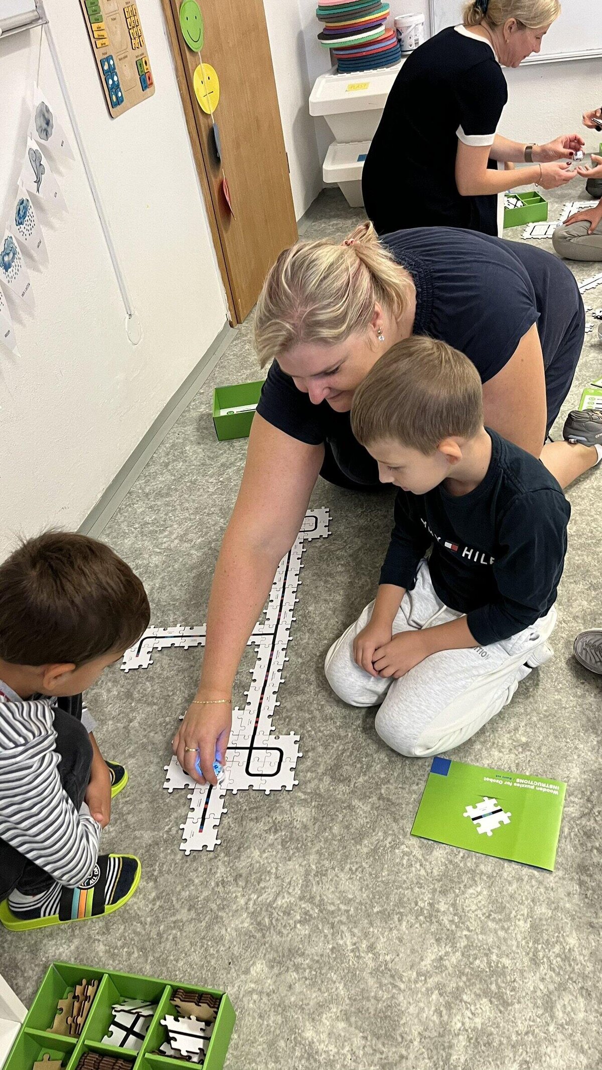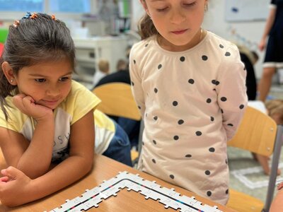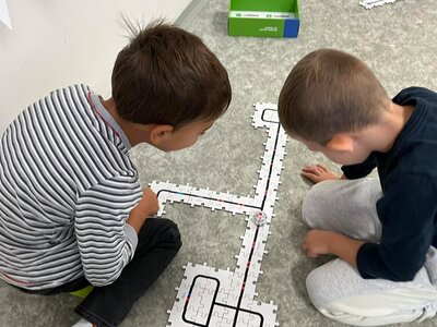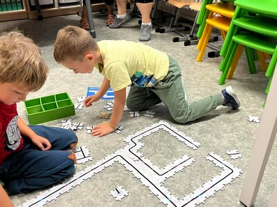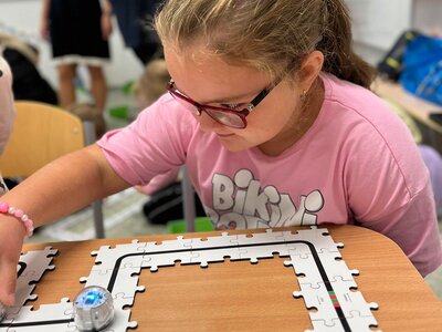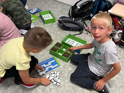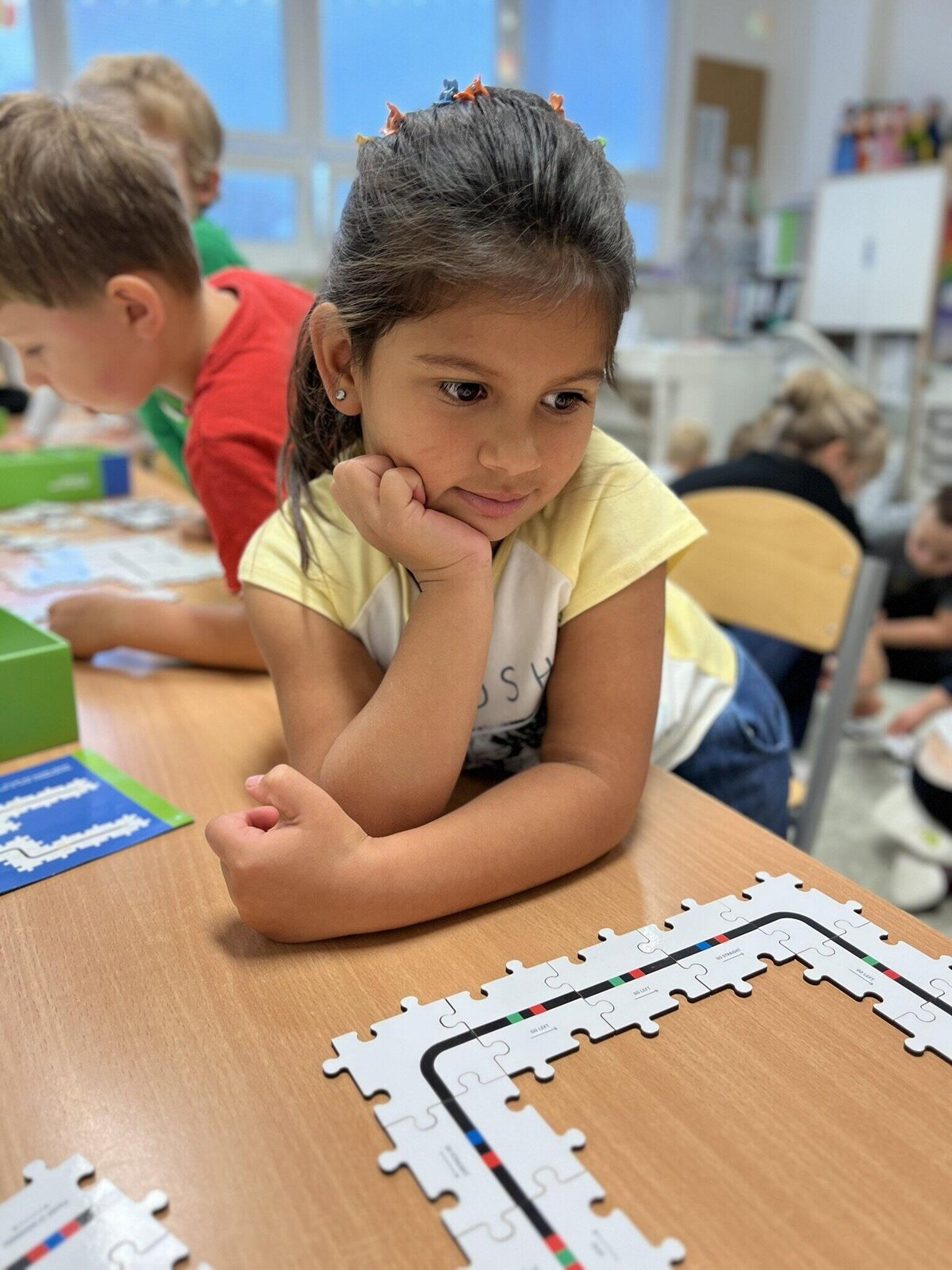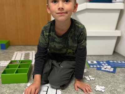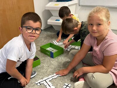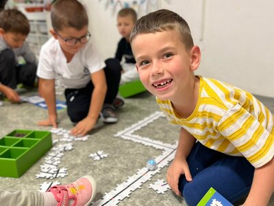 V pondělí jsme měli přípravných třídách zajímavou ukázku moderních technologií. Děti se seznámily s ozoboty – malými chytrými roboty, kteří dokážou jezdit po dráze sestavené z puzzlí. Žáci si vyzkoušeli stavět vlastní trasu z barevných puzzlí a s radostí sledovali, jak po ní ozobot projíždí a plní různé příkazy.