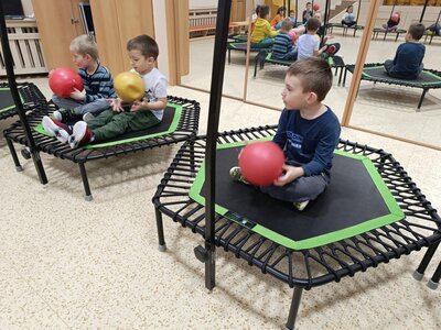 První prosincový týden jsme zahájili lekcí na trampolínách v Domě dětí a mládeže. Děti si krásně zaskákaly, zatančily, zahrály hry a užily si pohodu na trampolínách. V následujících dnech jsme se ve třídě připravovali na příchod Mikuláše a jeho pomocníků. V pátek jsme se opět vrátili do DDM, kde byl sál, v němž obvykle skáčeme, k nepoznání – čekalo na nás nebe, peklo a krásná pohádka. Děti nakonec přivolaly samotného Mikuláše, který všechny potěšil.