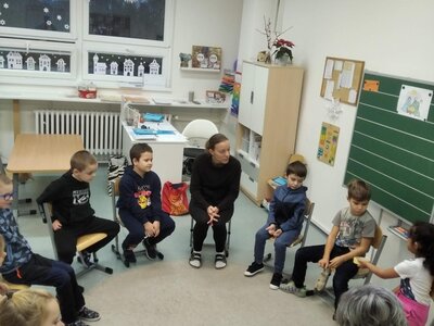 Nás navštívil dramatický sbor 1. – 5. třídy ZŠ Jaroslava Seiferta s vánočním vystoupením a také paní učitelka Martina, která za námi bude pravidelně docházet s intervenčním programem.