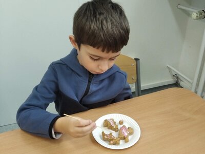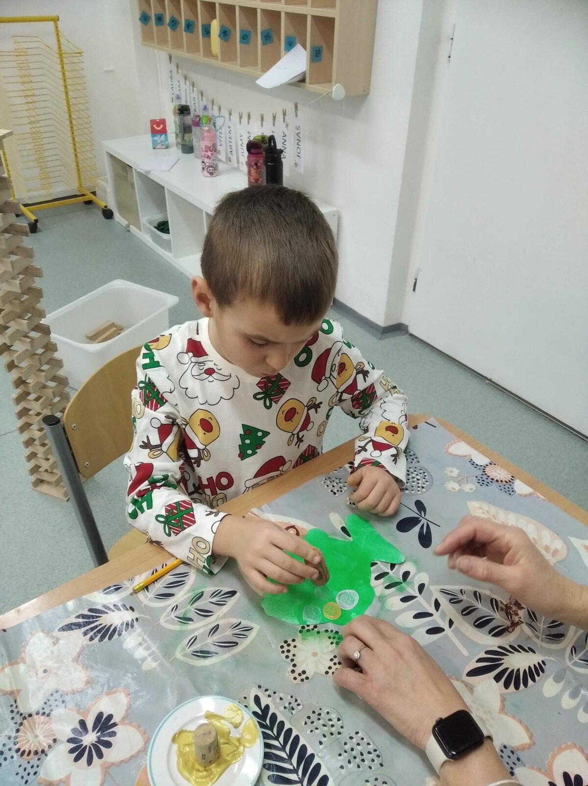 V tomto měsíci jsme si povídali především o adventu. Ozdobili jsme si stromeček, paní asistentka nám vyrobila krásný adventní věnec, na kterém jsme každé pondělí zapalovali odpovídající počet svíček. Víme, že adventní neděle jsou 4 a každá má své jméno. Povídali jsme si o vánočních tradicích a seznamovali se s těmi, které dodržujete doma. My jsme např. stavěli Betlém, prohlíželi si jmelí, rozkrajovali jablíčko, tvořili vánoční stromečky, věnce a kapříky. Prohlíželi si pravé rybí šupiny a pomocí špejlí zdobili perníčky. Poslední školní den jsme věštili budoucnost pomocí hrníčků a pouštěli vánoční lodičky.