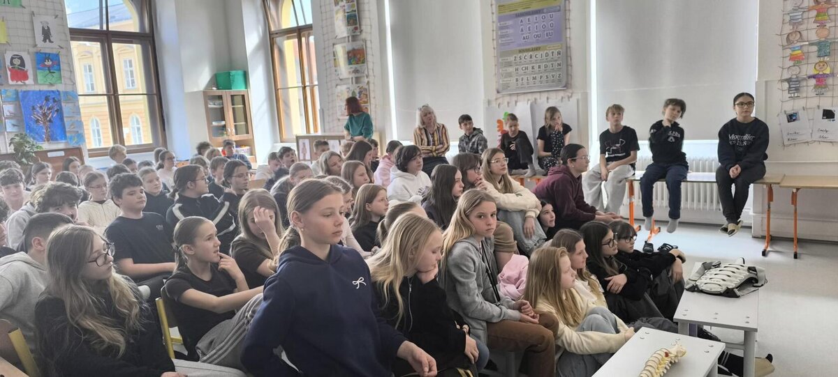 Druhým lektorem byl Vašek, jenž se profesně věnuje rizikovým sportům a dokázal žákům srozumitelně vysvětlit, jak důležité je předcházet úrazům a chovat se zodpovědně.