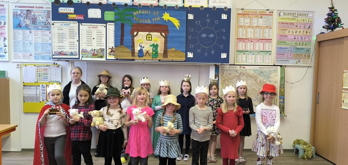 Narodil se Kristus Pán, veselme se…, zpívali žáci hudebně dramatického kroužku v Centru seniorů Mělník. Ve svém vystoupení nejen zpívali za doprovodu klavíru a rytmických hudebních nástrojů, ale také recitovali vánoční a zimní verše. Některé koledy byly zpestřeny pohybovými aktivitami. Hlavním motivem poetického vystoupení se stala vánoční hra o narození Ježíška v Betlémě, ve které nechyběli tři králové, pastýři s ovečkami a ani král Herodes.
