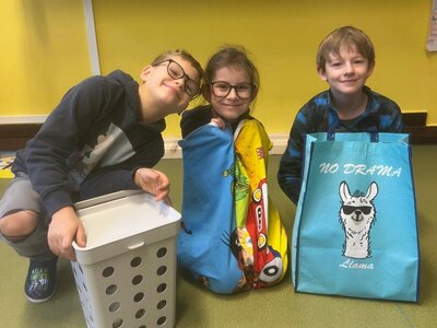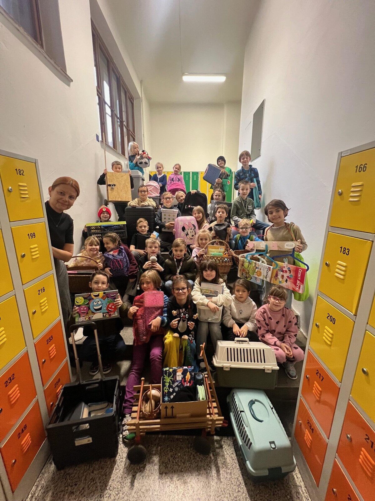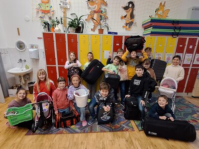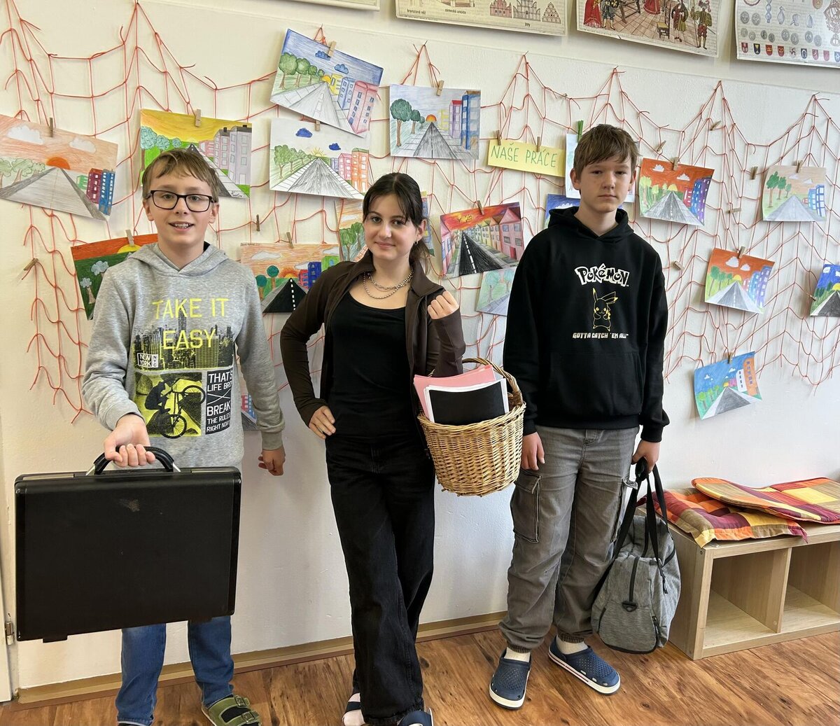 Dne 12. 11. zažila naše škola tak trochu jiný den. Na chodbách jste mohli spatřit žáky s podběrákem, nákupním vozíkem ze supermarketu, prádelním hrncem, volební urnou či přepravkou, z které místo domácího mazlíčka vykukovaly učebnice a sešity. Proč? Protože No Bag Day, čili den bez školních batohů, zato ale s co nejoriginálnější taškou-netaškou…
