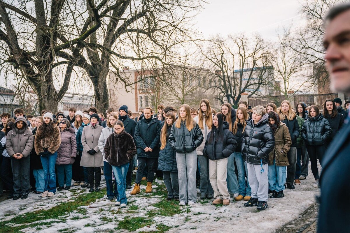 Na pietní akci, která se uskutečnila v Jungmannových sadech, si žáci vyslechli projevy Jeho Excelence francouzského velvyslance v ČR Stéphana Louise Josepha Crouzata, poslance Parlamentu ČR pana Martina Kupky a starosty Mělníka Tomáše Martince. Ve svých vystoupeních vzdali hold památce mladého a mimořádně statečného studenta, jehož odkaz má svůj význam i ve víru současných událostí.
