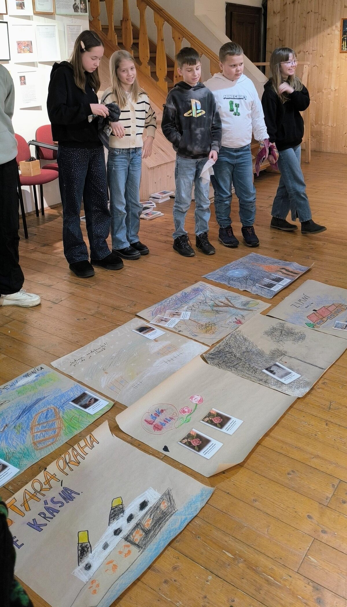 Velmi vydařenou výstavu v mělnickém muzeu navštívili začátkem února i žáci třídy 5.A. Výstava prezentovala tvorbu 29 autorů z Mělníka a jeho okolí, kteří se inspirovali především místními přírodními krásami a zajímavou architekturou. Školáci měli nejen příležitost si prohlédnout malby, grafiky a fotografie, ale vzájemně mezi sebou sdílet pocity, nálady a domýšlet příběhy k vybraným obrazům. Všechny zaujala možnost vyzkoušet si ve dvojicích výtvarné zobrazení některých motivů.