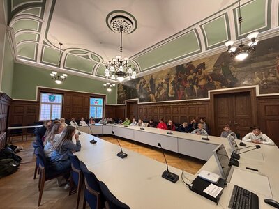 Odpoledne následovala prohlídka radnice, kde nás přivítal pan starosta. Po milém setkání jsme se vydali na prohlídku místních vinic, které jsou pro Radebeul typické. Večer se někteří žáci domluvili s německými studenty a společně vyrazili do restaurace, kde si užili neformální prostředí.