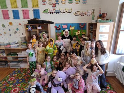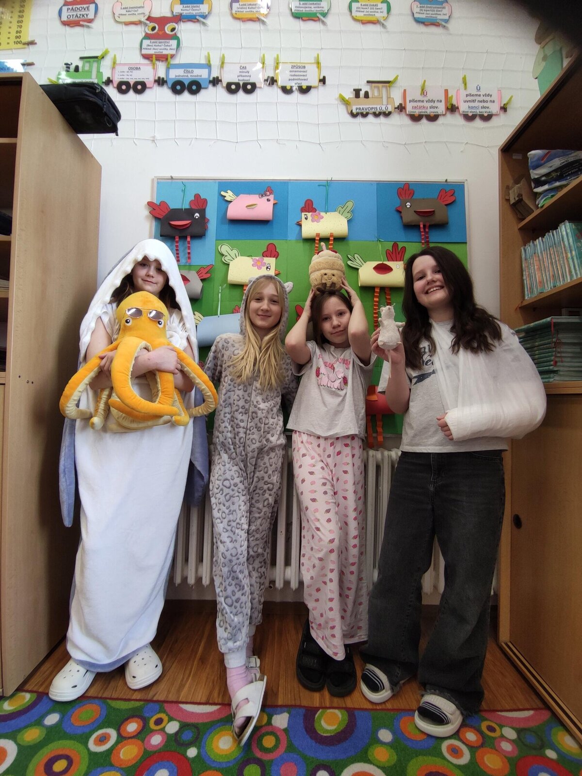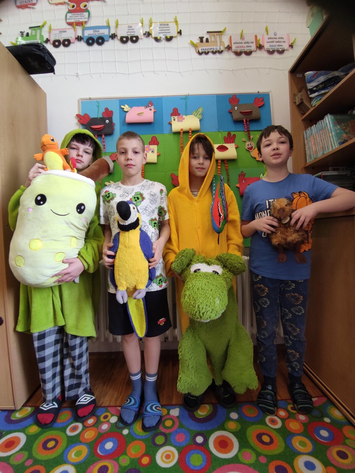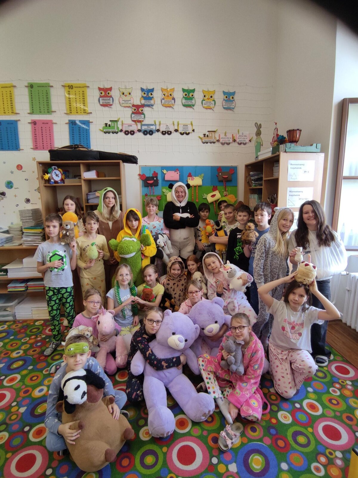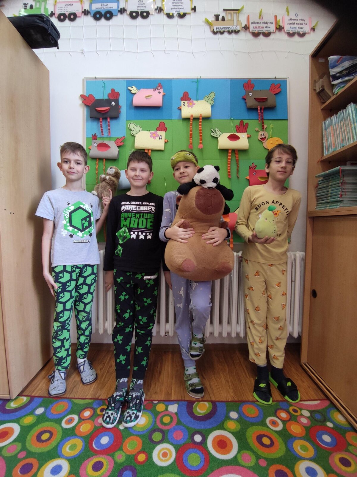 V březnu se naše třída na chvíli ponořila do světa snů, hebkosti a vzpomínek při projektovém dni Pyžama a plyšáci.
