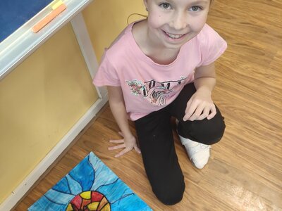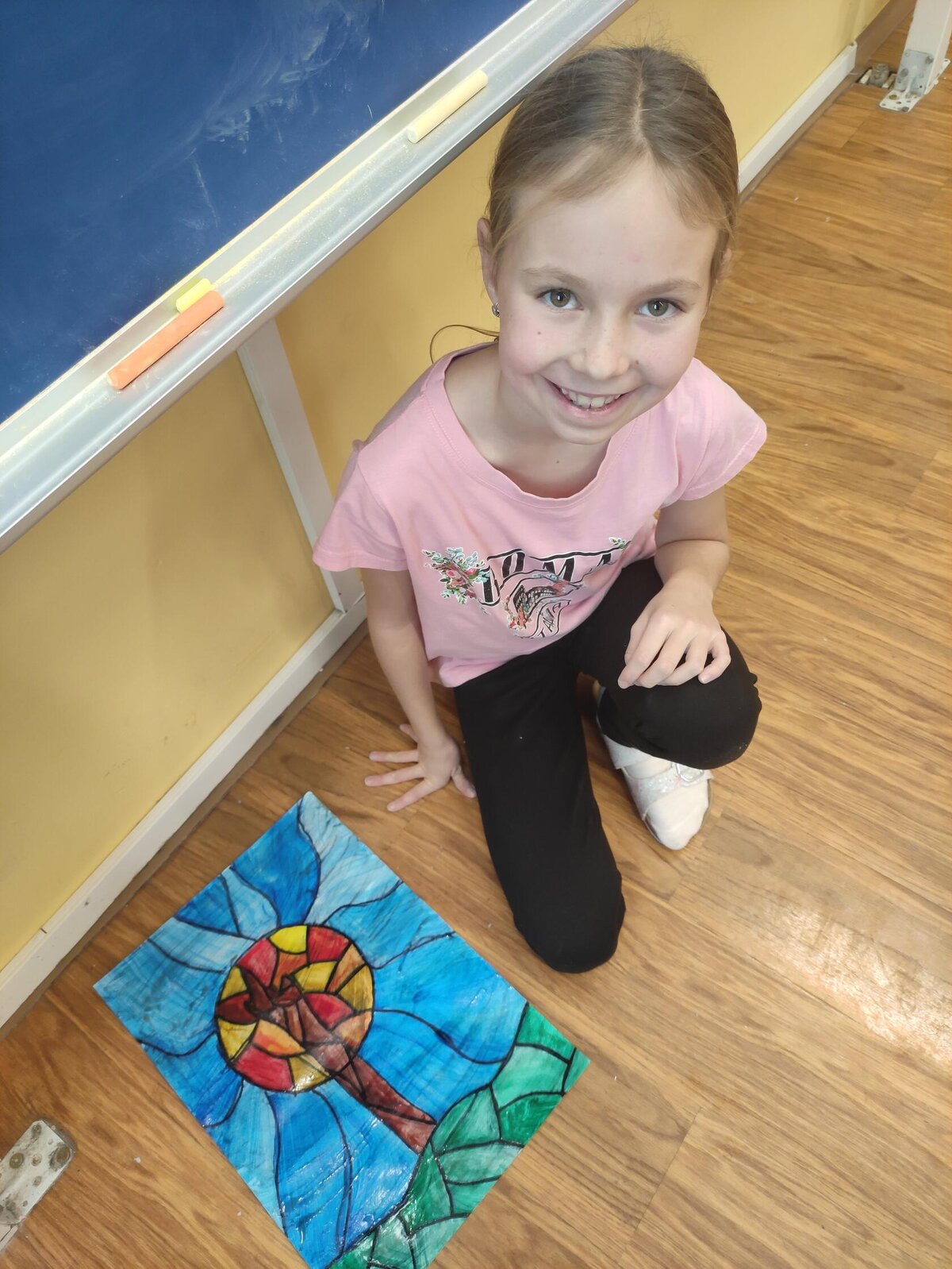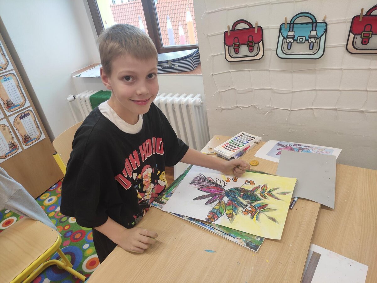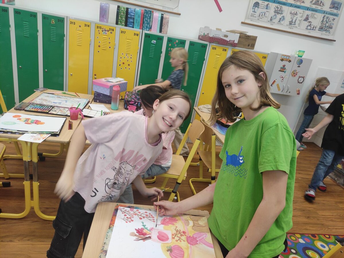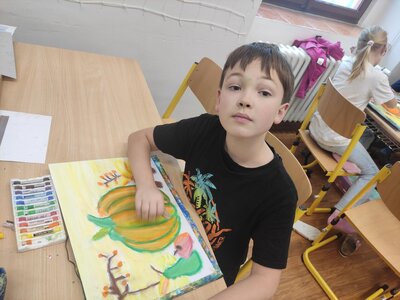 Hotová díla jsou nyní vystavena ve vestibulu školy, kde vzbuzují radost i obdiv všech.
