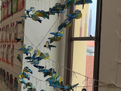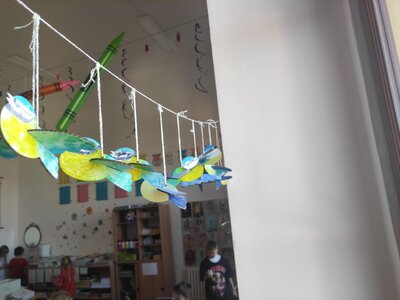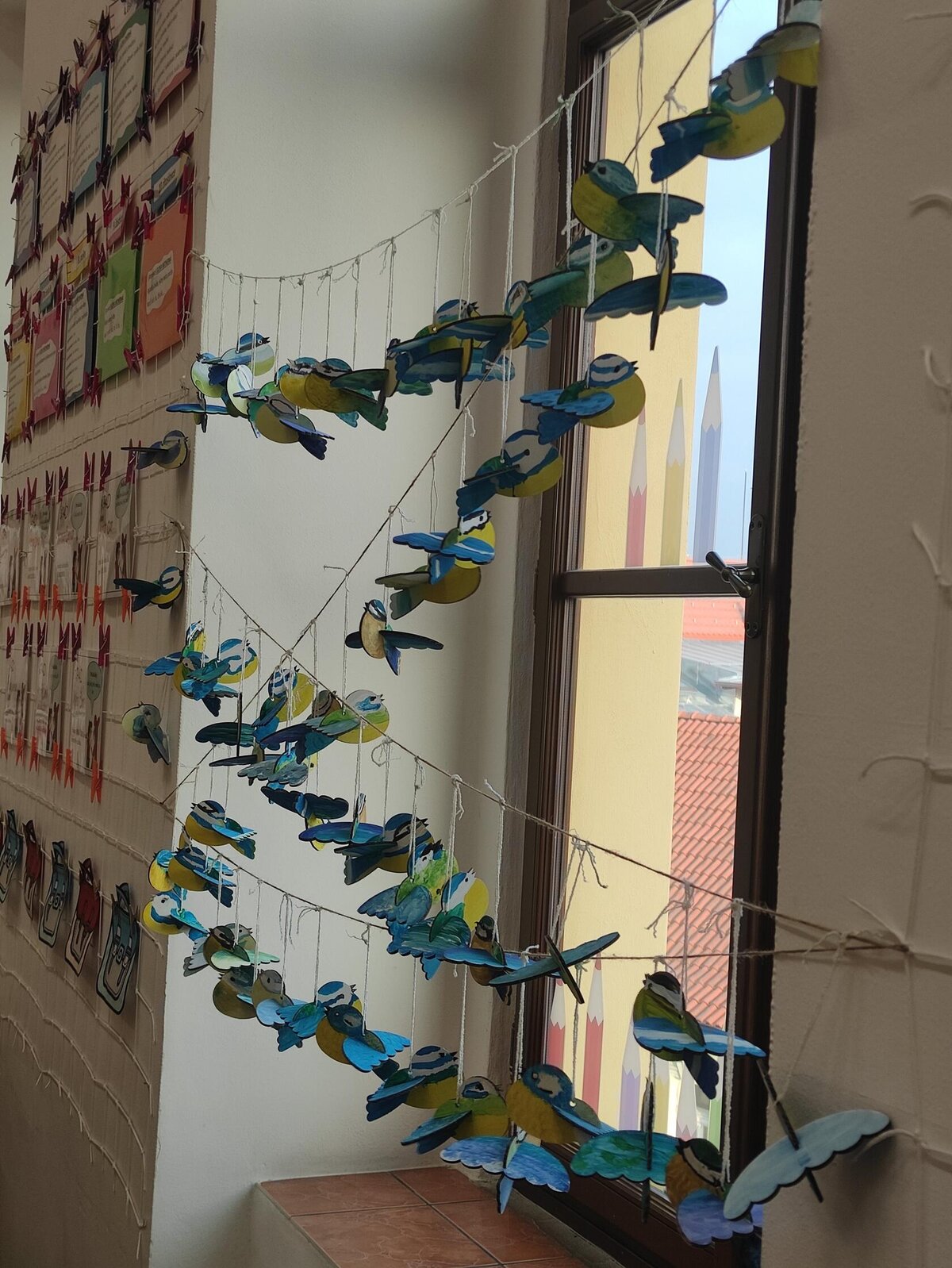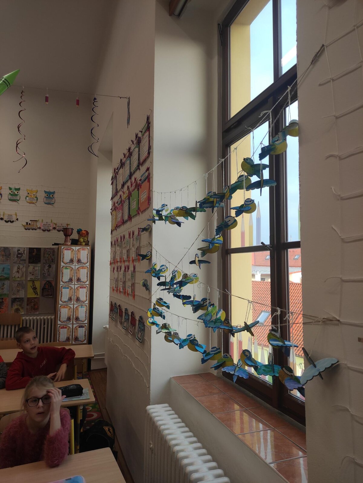 V pracovních činnostech si žáci procvičují a zdokonalují jemnou motoriku při stříhání, lepení a sestavování papírových výrobků. Tentokrát si každý vytvořil svou vlastní sýkorku z kartonu, která vypadá téměř jako živá.
