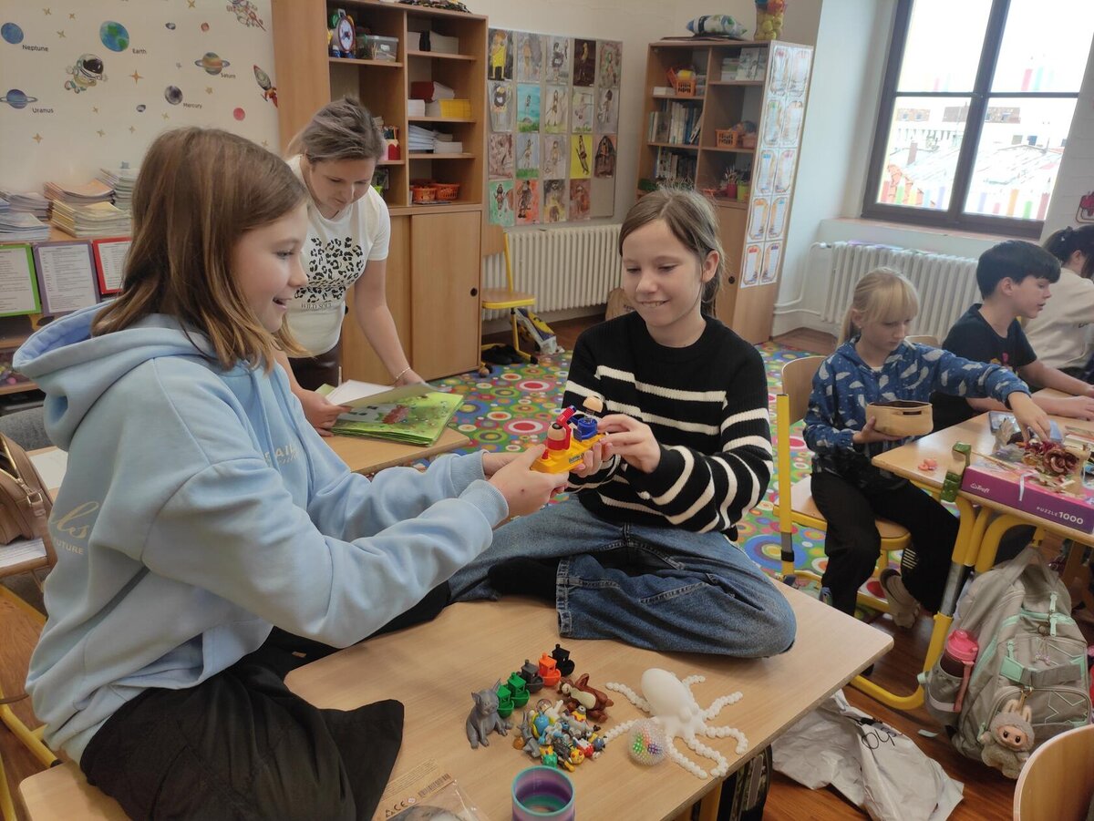 Děti si tak prakticky vyzkoušely, jak fungoval obchod v době, kdy ještě neexistovaly peníze, a společně jsme si užili příjemnou a živou výukovou hodinu.