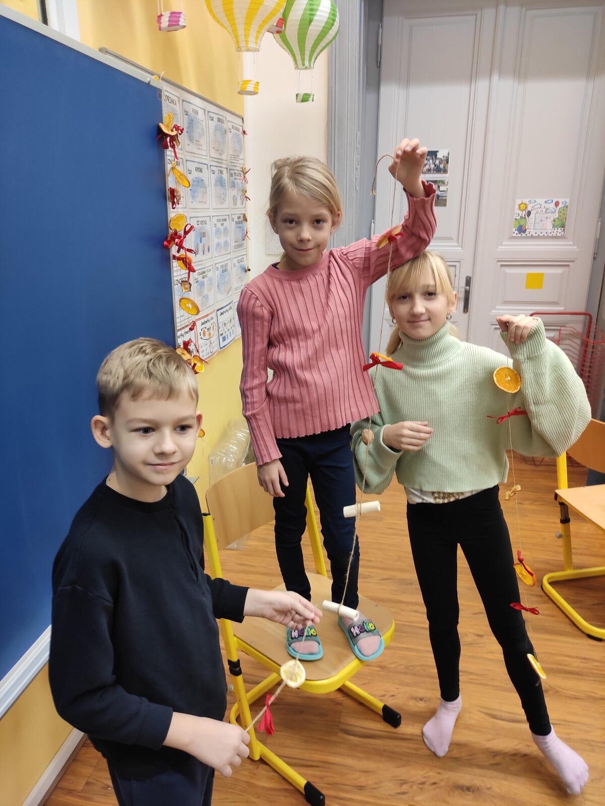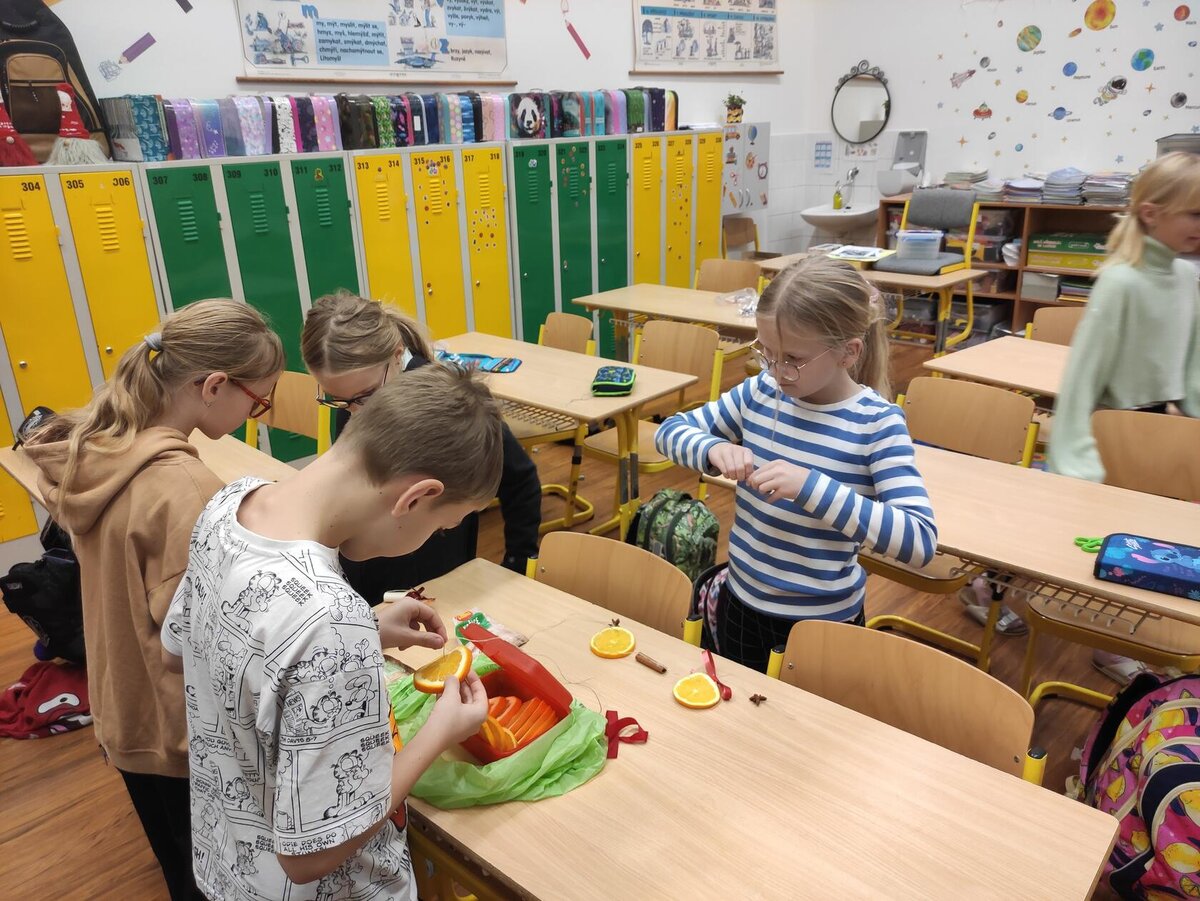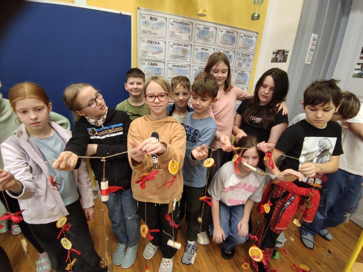 Dnes naši žáci s velkým nadšením a kreativními nápady vyzdobili školu vánočními závěsy z přírodních materiálů, které provoněly každý kout školy. Díky jejich šikovnosti a fantazii se z naší školy stal opravdu útulný a voňavý vánoční svět.