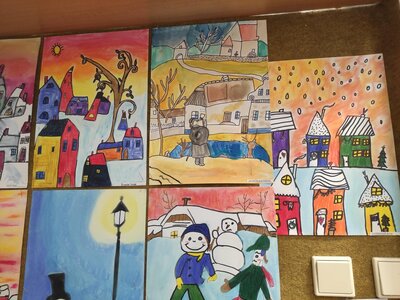 Každý obrázek je malým uměleckým kouskem, který přináší do školy kouzlo a radost zimních dnů.