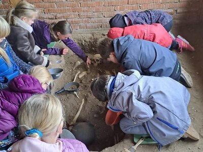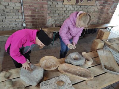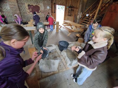 Kopali v zemi, objevovali tajemné kostry, mlátili obilí jako pravěcí farmáři, vyráběli keramické sošky a nádoby. Také si pletli vlastní kožené oblečení. Dokonce z kamenů vyráběli pěstní klíny – „jako praví lovci a sběrači!“, smáli se děti.