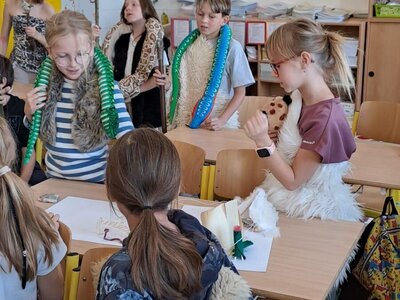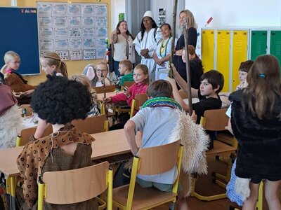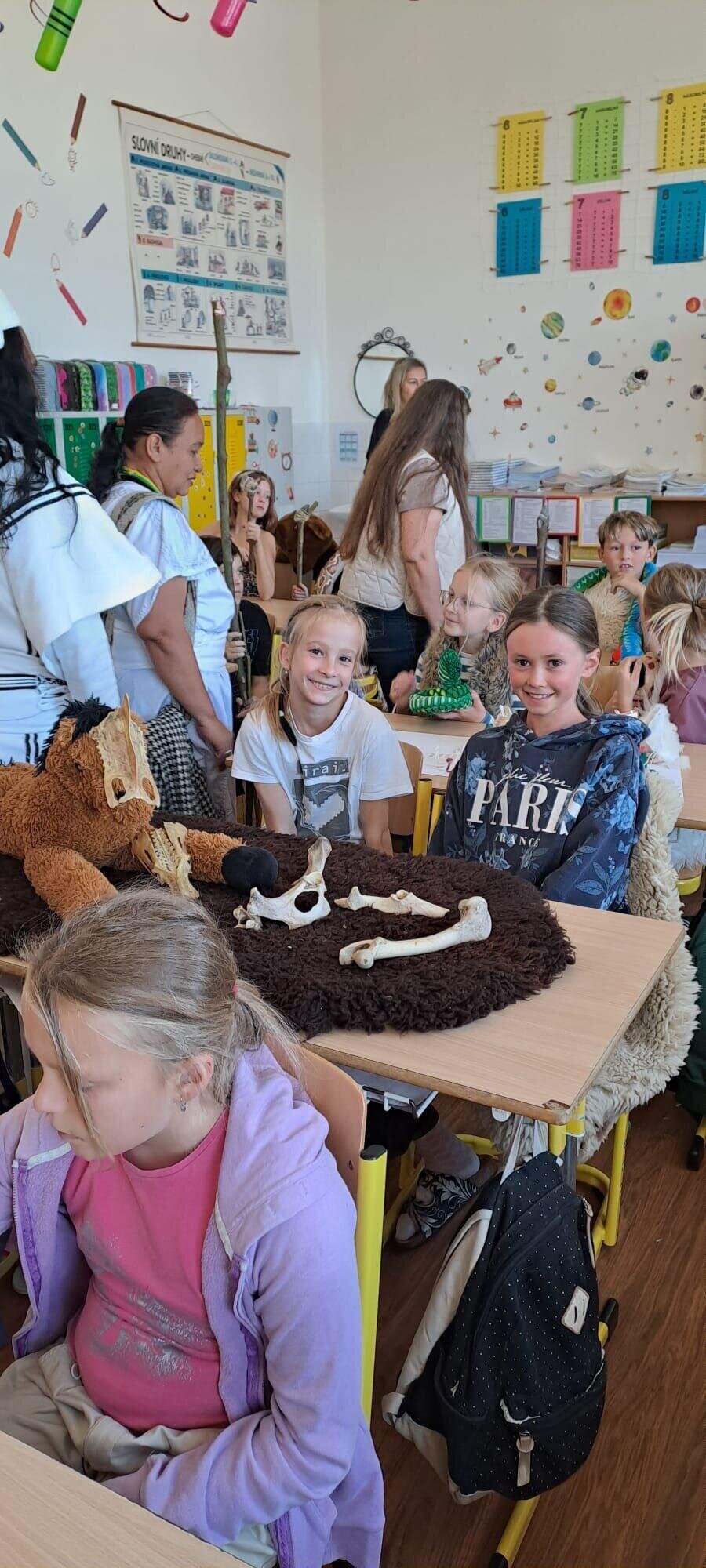 Uprostřed vlastivědy, kde jsme se zrovna věnovali výkladu o lovcích a sběračích.....se najednou otevřely dvěře a ....nám zůstaly pusy dokořán!
