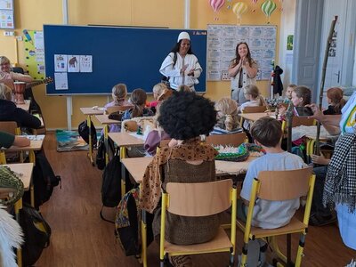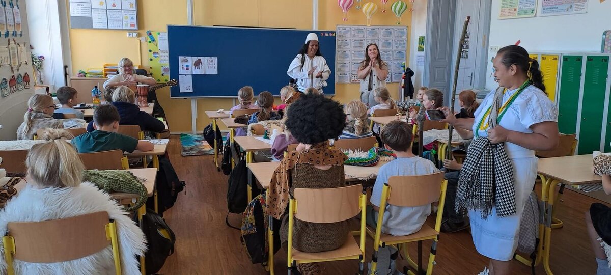 Děti krásně odprezentovaly své poznatky a nakonec ještě vzácné návštěvě stačily zazpívat dvě české písničky. Poté již následoval vodopád otázek a odpovědí.