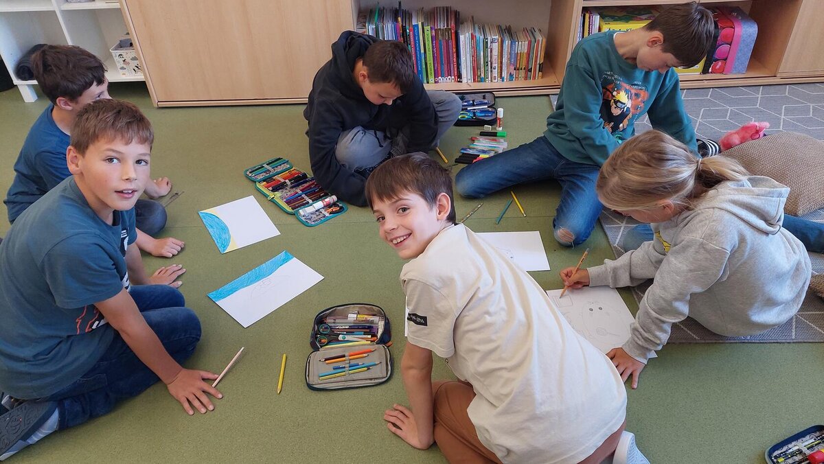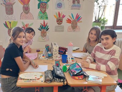 Vytvořili jsme společná výtvarná díla v menších skupinách na téma "Mít své místo".