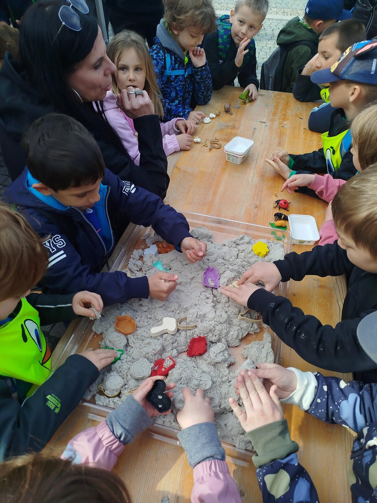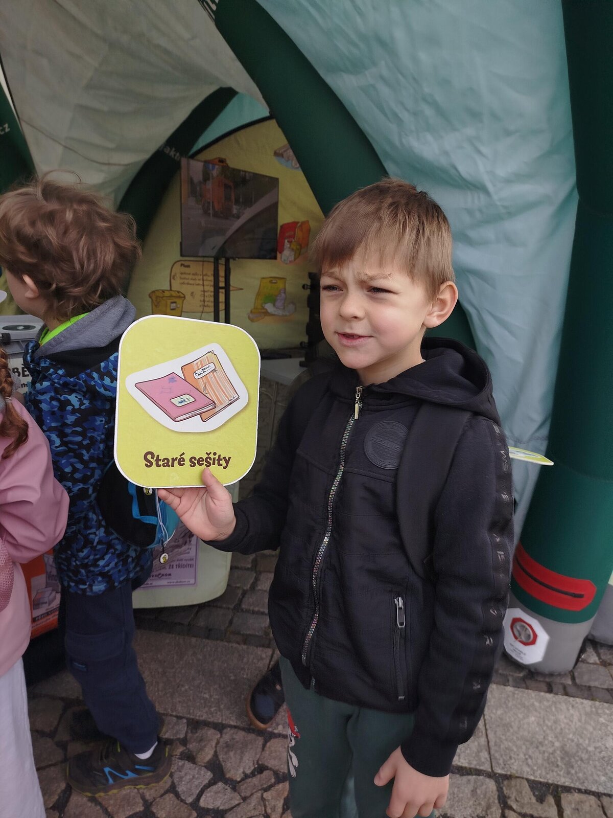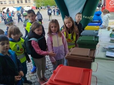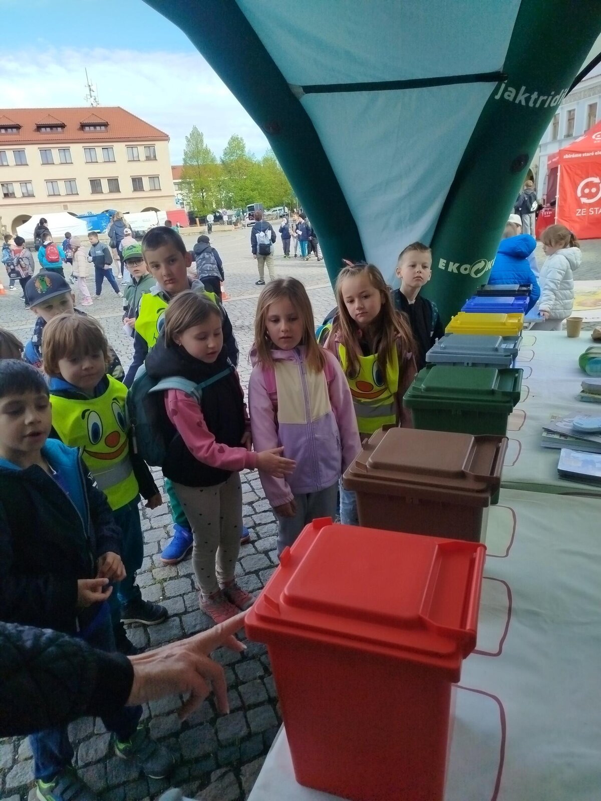 Na náměstí Míru v Mělníku jsme měli možnost navštívit aktivity a ukázky, jakým způsobem se likviduje, třídí a zpracovává odpad. Děti nahlédly do auta se speciální kamerou, kde pozorovaly myši a potkany, kteří žijí v kanálech, prohlédly si živé ryby a třídily výukové kartičky do správných popelnic a kontejnerů. Nejvíce děti zaujalo velké speciání auto na čištění velkých kontejnerů. V rámci vzdělávacího programu RMM si děti procvičily vývoj brouků a živočichů od vajíčkek až po dospělost.