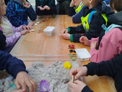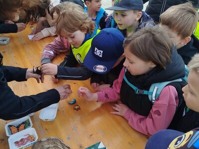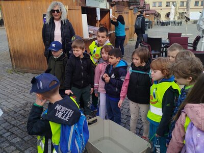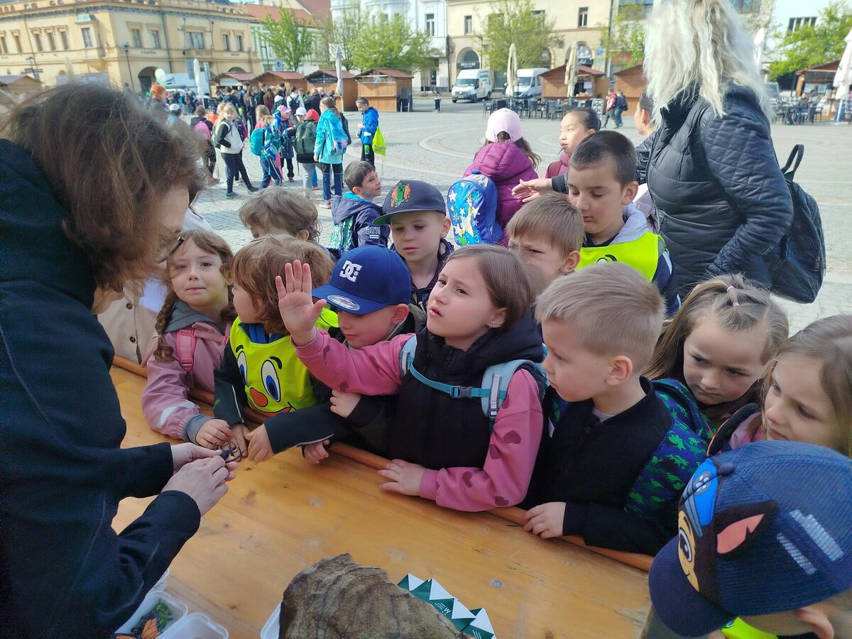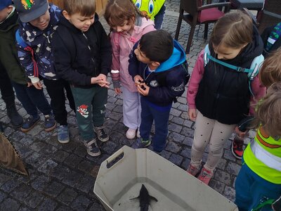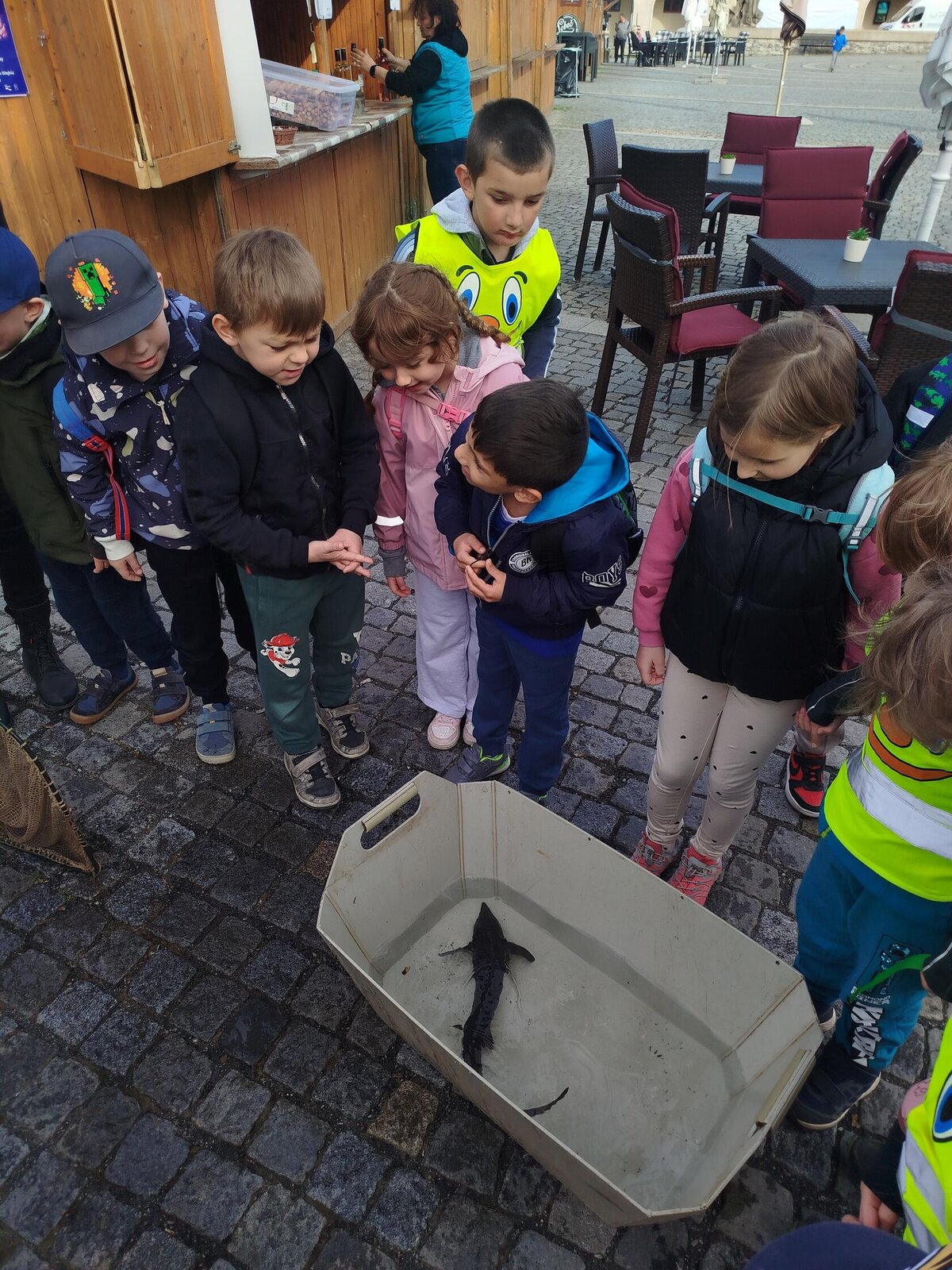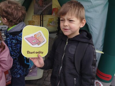 Na náměstí Míru v Mělníku jsme měli možnost navštívit aktivity a ukázky, jakým způsobem se likviduje, třídí a zpracovává odpad. Děti nahlédly do auta se speciální kamerou, kde pozorovaly myši a potkany, kteří žijí v kanálech, prohlédly si živé ryby a třídily výukové kartičky do správných popelnic a kontejnerů. Nejvíce děti zaujalo velké speciání auto na čištění velkých kontejnerů. V rámci vzdělávacího programu RMM si děti procvičily vývoj brouků a živočichů od vajíčkek až po dospělost.