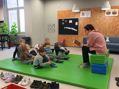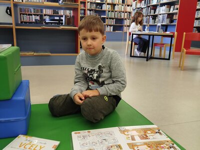 V polovině října jsme navštívili městskou knihovnu Mělník, kde nás provedla Mgr. Tereza Česáková inspirativní besedou ,, Co je velké a co malé?" Kdo jsi ty a kdo jsem já? Co je chvíle a co je dlouho? Poslechli jsme si pohádku - O kolečkách a nekonečnu. Existuje příběh, v němž se nic neděje? Můžeš být zárověň velký a malý? Tyto zdánlivé ,,nesmysly" nás provedly světem koleček a nekonečna, pomohly nám roztřídit věci kolem nás.