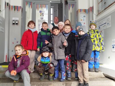 Žáci z přípravné třídy navštívili své kamarády v 1. A třídě na základní škole. Děti měly možnost nahlédnout do opravdové výuky, prohlédnout si třídu a vyzkoušet si některé školní aktivity. Prvňáčci se pochlubili, co všechno se už od začátku školního roku naučili. Společně si také zazpívali písničku a splnili krátký zábavný úkol. Návštěva proběhla v přátelské atmosféře a pomohla dětem z přípravné třídy odbourat obavy z nástupu do 1.třídy. Už teď se těší, až i ony usednou do školních lavic jako opravdoví školáci. Děkujeme p. uč. Mgr. Renatě Plodíkové a jejím úžasným prvňáčkům za zdařilou prezentaci školního dne na základní škole.