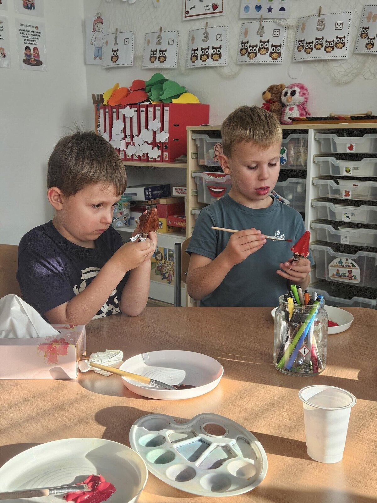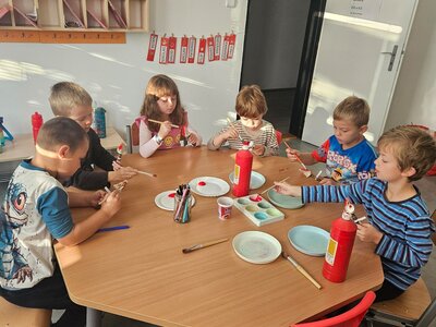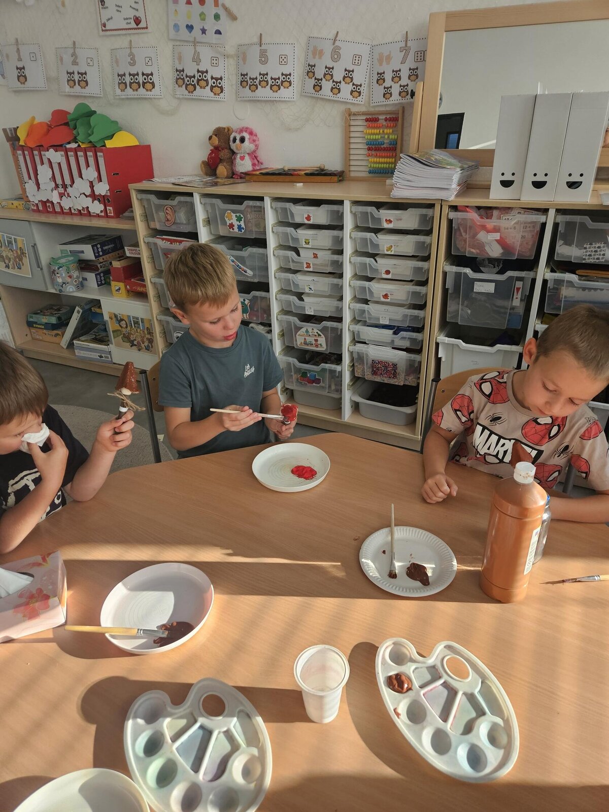Podzimní dílničky jsou ideální k rozvoji tvořivosti, jemné motoriky a spolupráce mezi dětmi. Děti postupně navštívily všechny třídy 0.A, 0.B, 0.C, 0.D, kde vytvářely výrobky, které si připravila p.uč. s p. asistentkou. Nabídka se skládala z jednoduchých technik - frotáže podzimních listů, skládání ježků, vystřihování a zdobení sovy a tvoření houbičkových skřítků. Dílničky děti bavily a ze všech výtvorů měly radost.