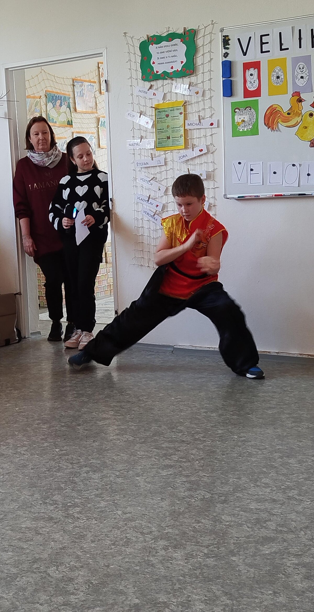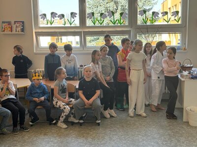 Děti zpívaly, recitovaly, tančily moderní tance. Měli jsme možnost vidět ukázky juda a kung fu. Na závěr si ještě děti z Přípravky procvičily hlavičky. Dostávali od žáků hádanky se sladkou odměnou. I naši předškoláci zazpívali školákům jarní písničky.