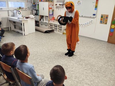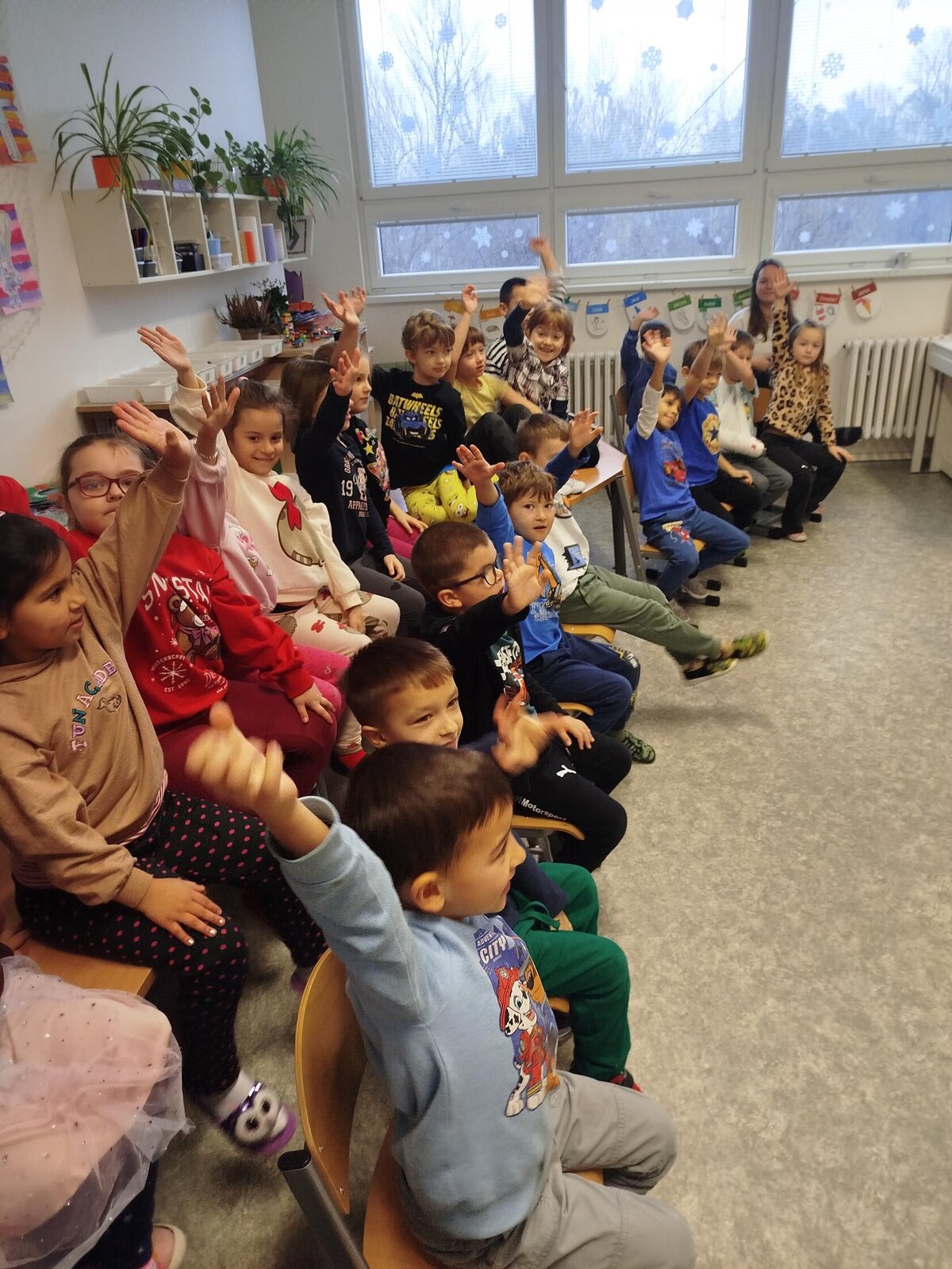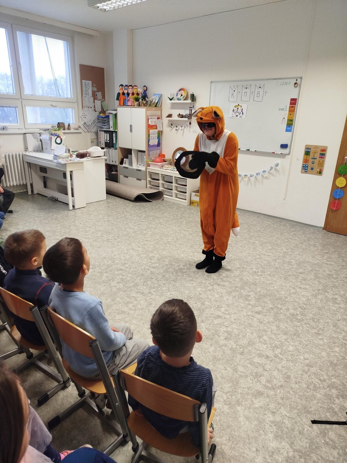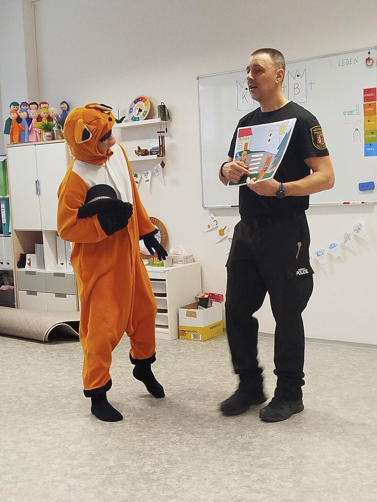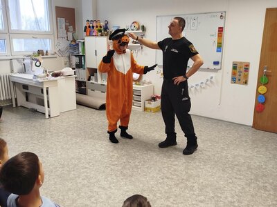 Dnešní den se děti během preventivního výukového programu ,, Jak se liška polepšila" naučily řešit spousty užitečných a praktických dovedností. Třeba, jak vyhodnotit správně dopravní situace, přecházet na přechodu pro chodce, bezpečně se chovat v přírodě, nenavazovat kontakt s cizími lidmi, nesbírat injekční stříkačky v parku...Děti se bavily a zároveň učily netradiční formou.