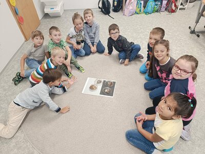Podzimní atmosféru jsme si ve třídě zpříjemnili ochutnávkou čaje z vlastnoručně nasbíraných šípků a nechyběl ani malý pokus – houbový otisk.