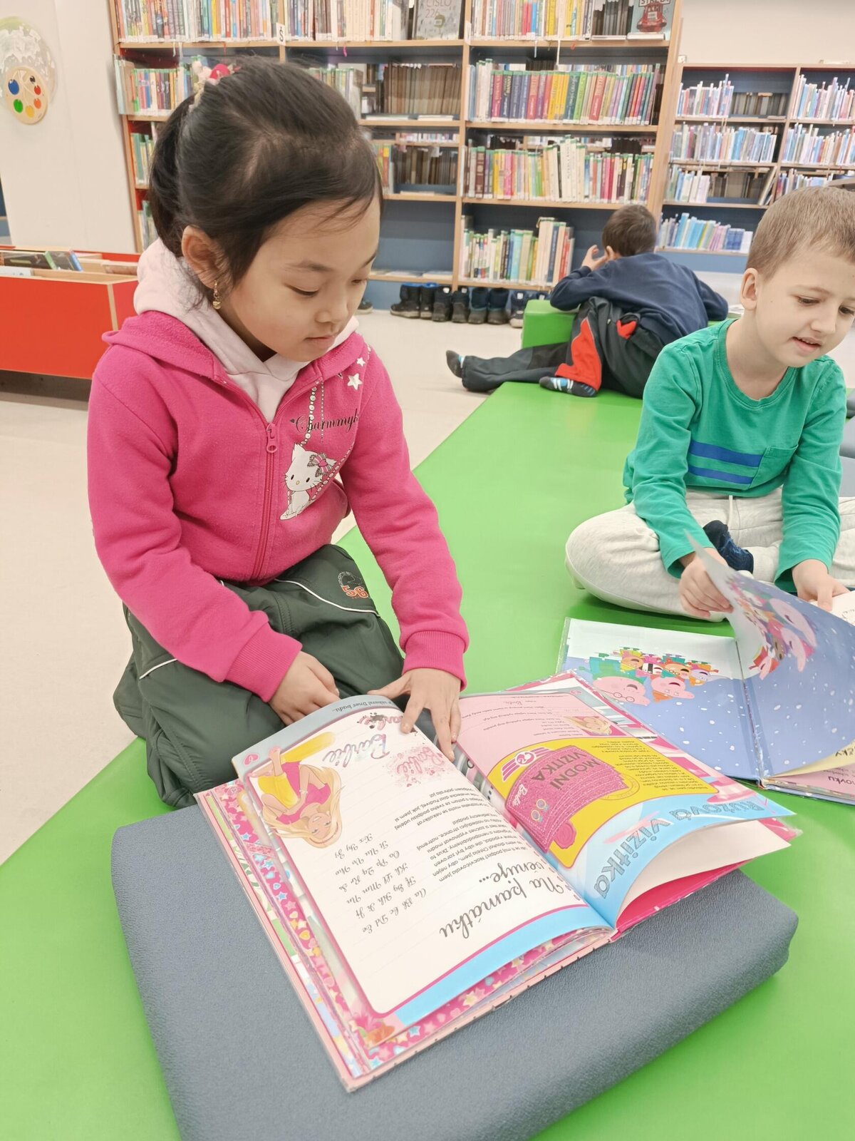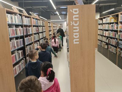 Podruhé jsme navštívili městskou knihovnu. Pan knihovník nám připomněl, co všechno se v knihovně dá najít – CD s namluvenými pohádkami, mapy, časopisy, odborné knihy a nakonec to, co nás zajímalo nejvíce: knížky v dětském oddělení.