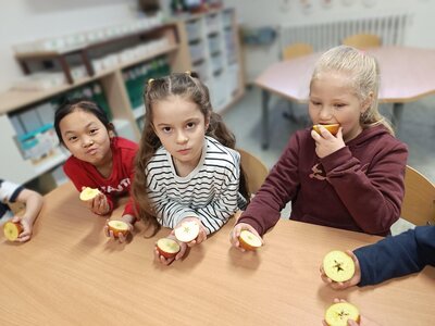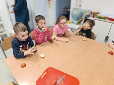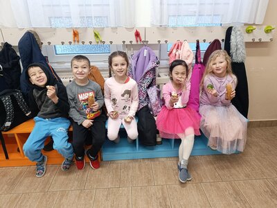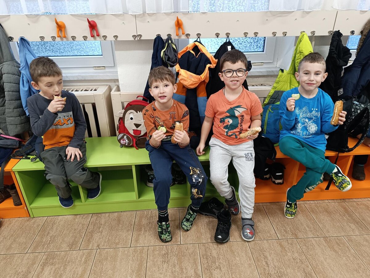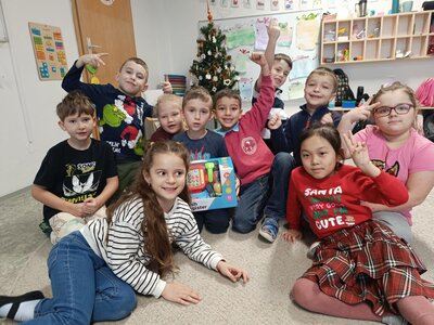 Nezapomněli jsme ani na oslavu – s kamarádem jsme ve třídě oslavili narozeniny. Každý den jsme si povídali o vánočních zvycích a některé z nich jsme si také společně vyzkoušeli. Poslední školní den čekalo na děti milé překvapení: nová kasa na hraní do obchůdku a perníček vytištěný na školní 3D tiskárně.