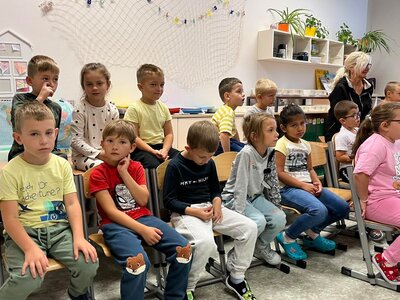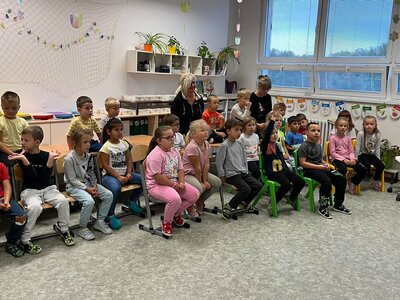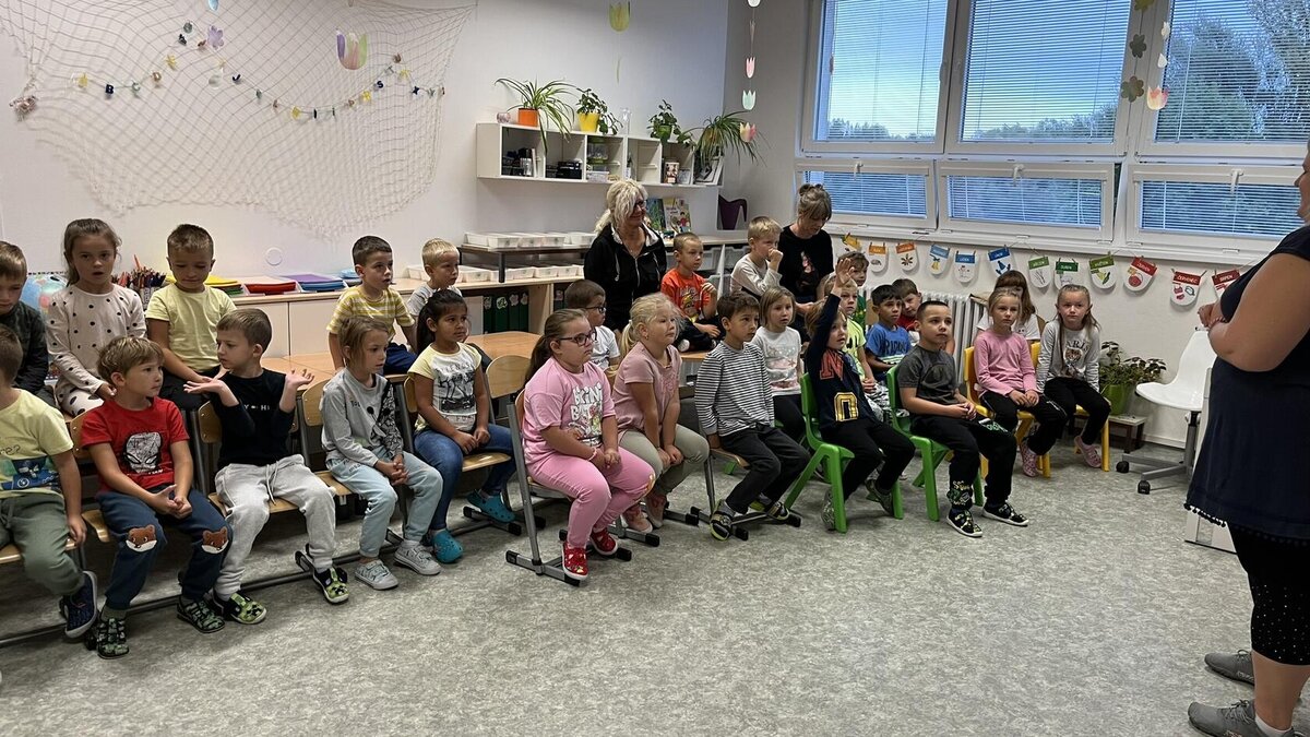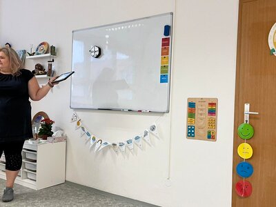 Součástí dopoledního programu byla také ukázka robota, který umí kreslit na tabuli. Děti s nadšením pozorovaly, jak robot dokáže s přesností kreslit tvar kruhu nebo "kytičky", a viděly tak, že i ve světě techniky se může spojit zábava s učením.