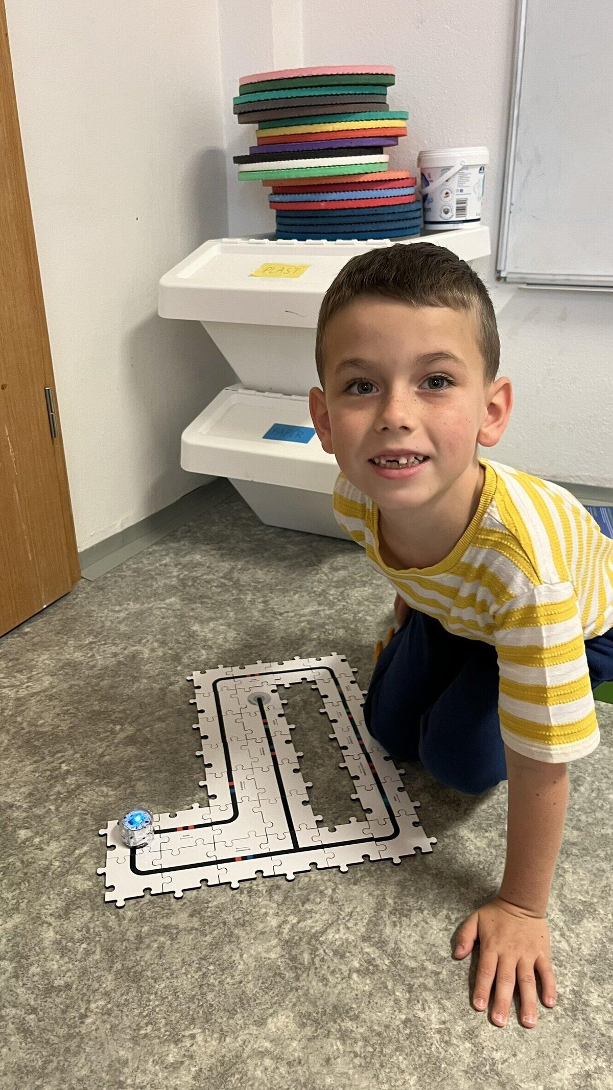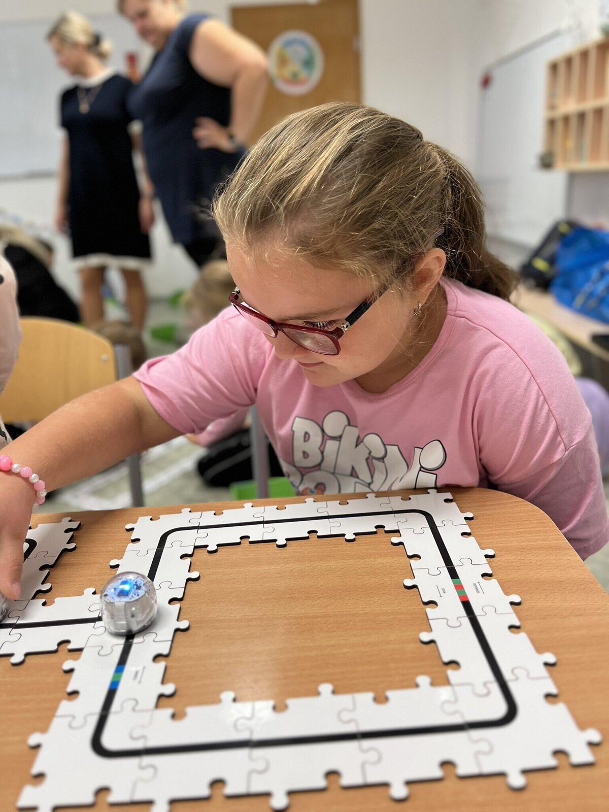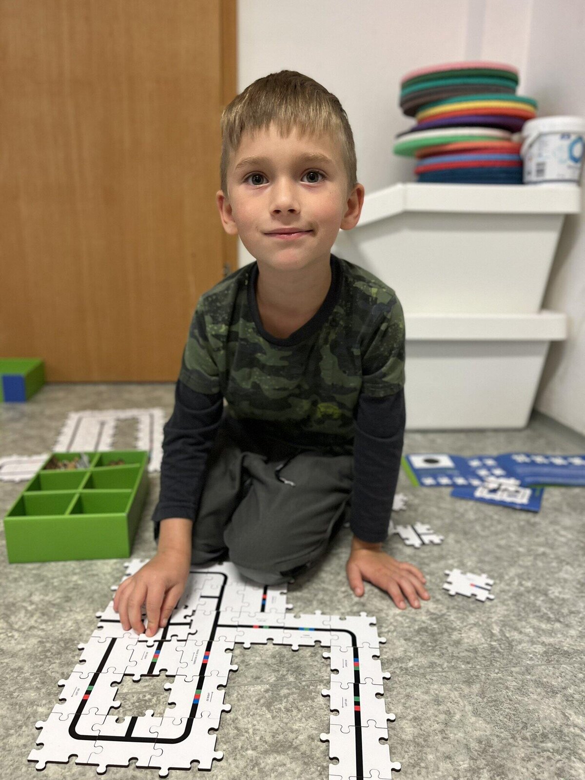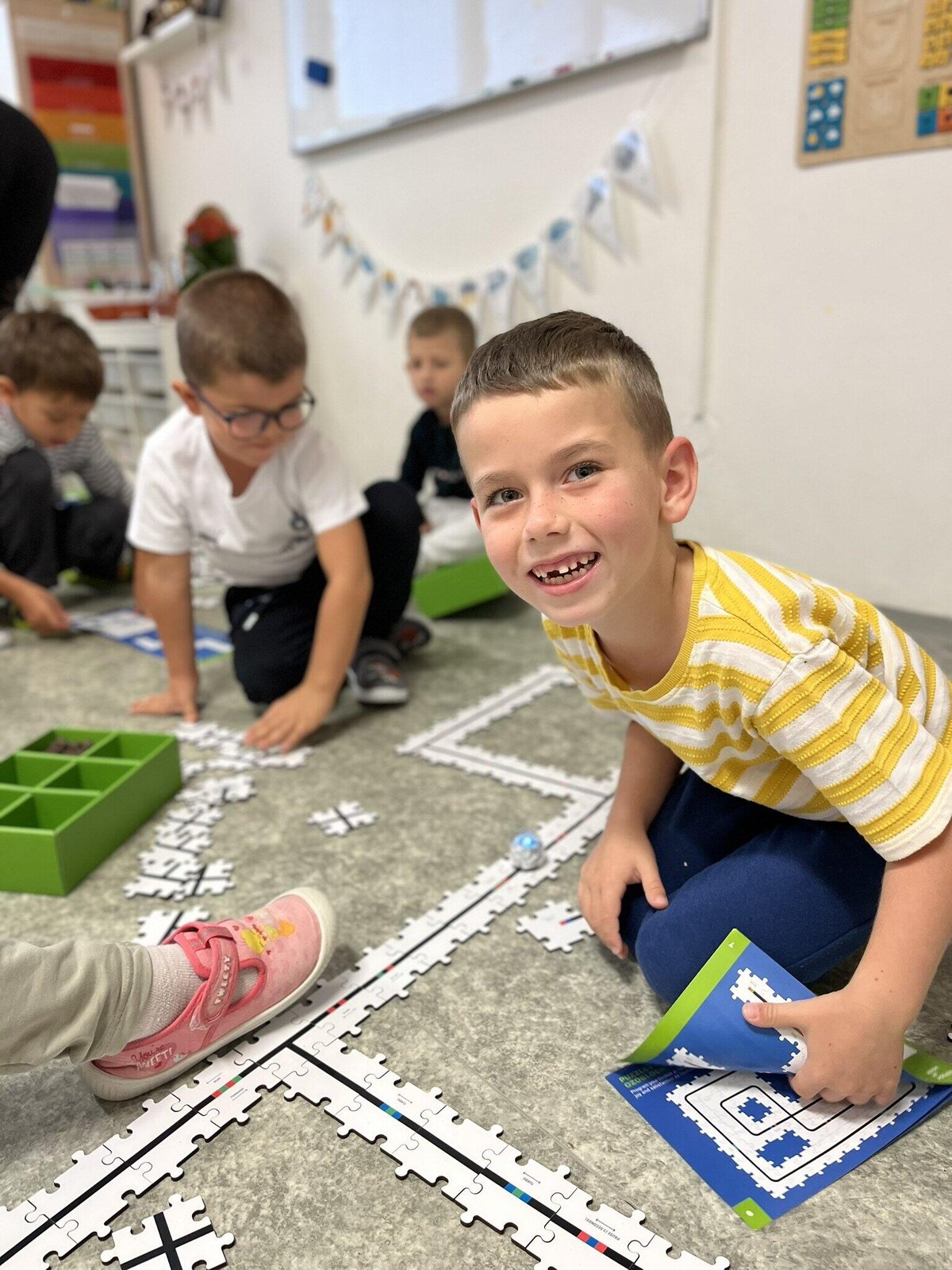 V pondělí jsme měli přípravných třídách zajímavou ukázku moderních technologií. Děti se seznámily s ozoboty – malými chytrými roboty, kteří dokážou jezdit po dráze sestavené z puzzlí. Žáci si vyzkoušeli stavět vlastní trasu z barevných puzzlí a s radostí sledovali, jak po ní ozobot projíždí a plní různé příkazy.