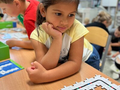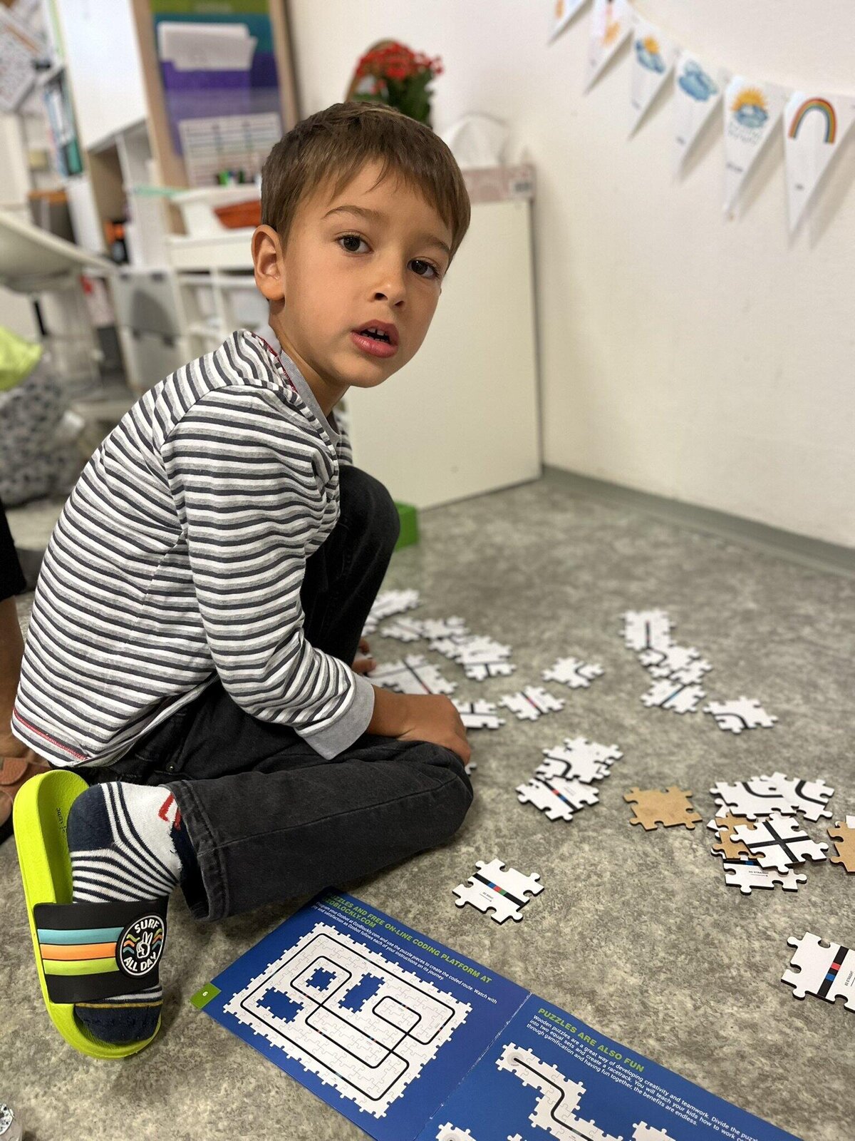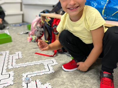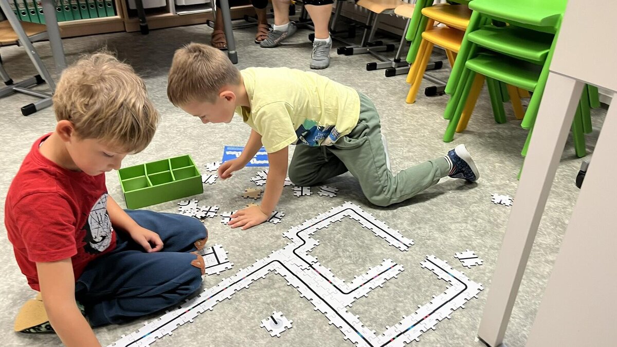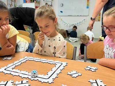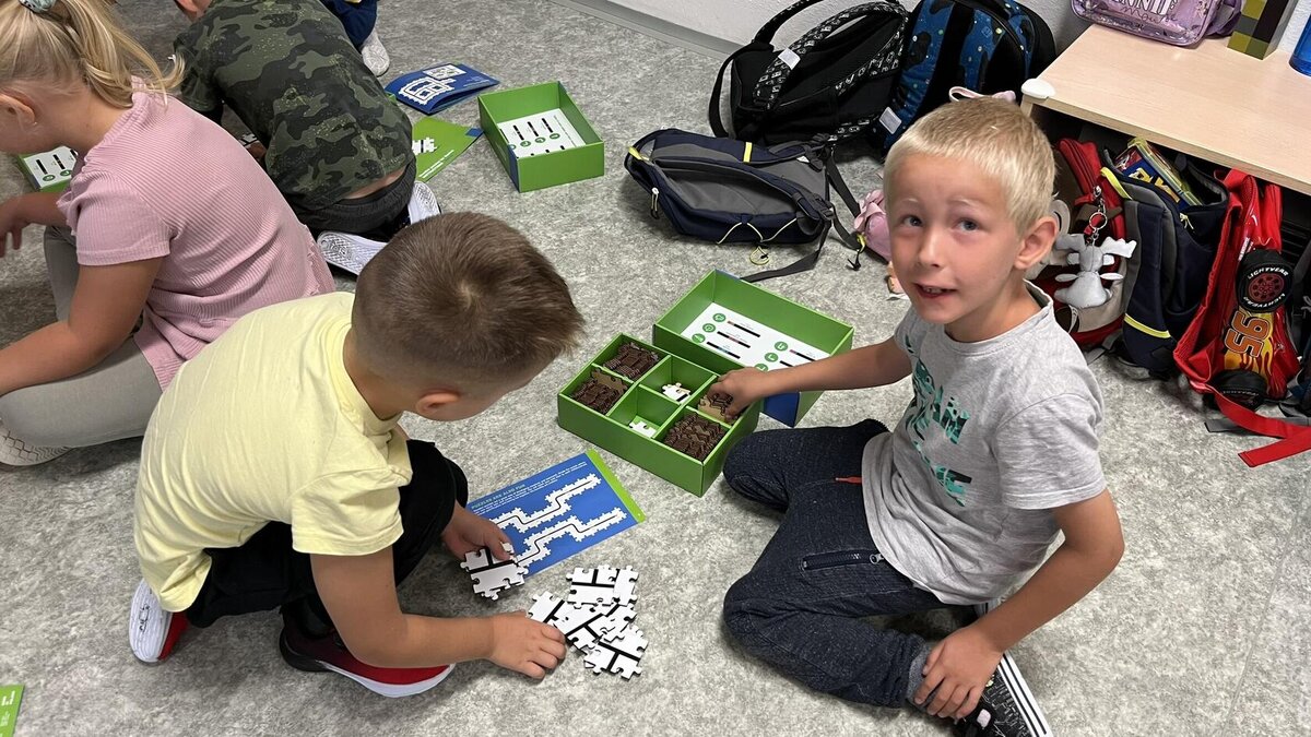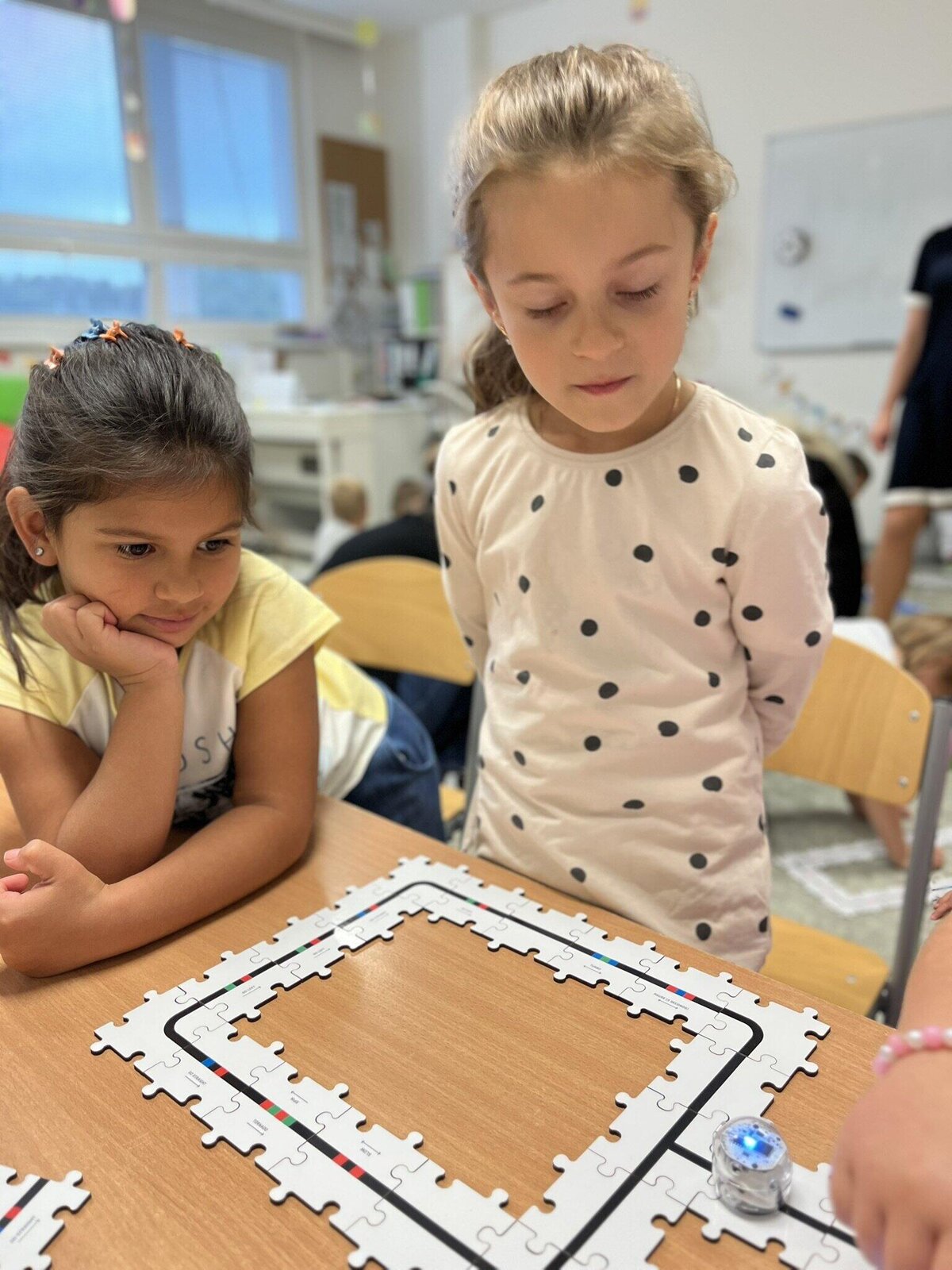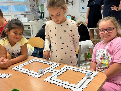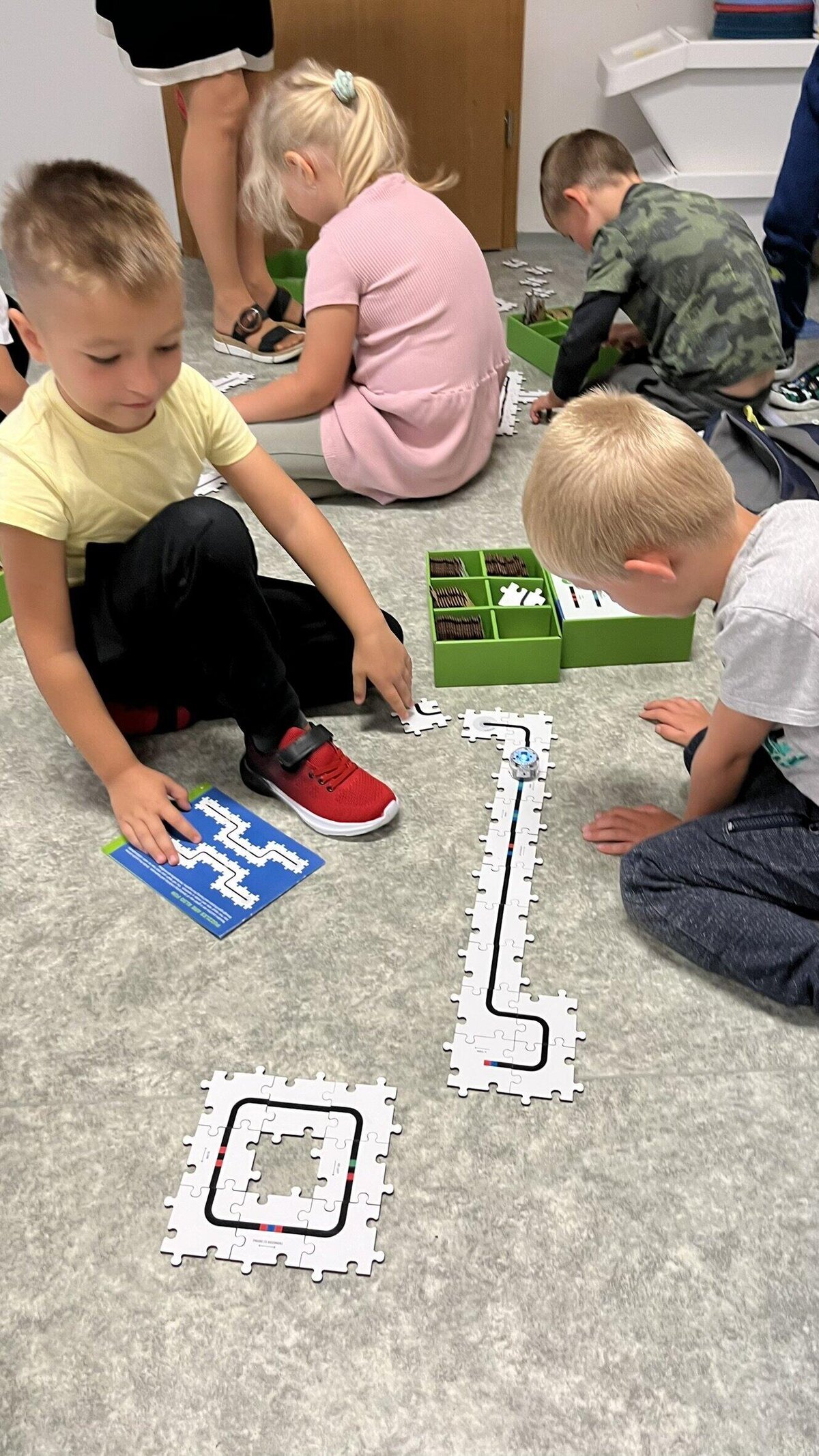 V pondělí jsme měli přípravných třídách zajímavou ukázku moderních technologií. Děti se seznámily s ozoboty – malými chytrými roboty, kteří dokážou jezdit po dráze sestavené z puzzlí. Žáci si vyzkoušeli stavět vlastní trasu z barevných puzzlí a s radostí sledovali, jak po ní ozobot projíždí a plní různé příkazy.