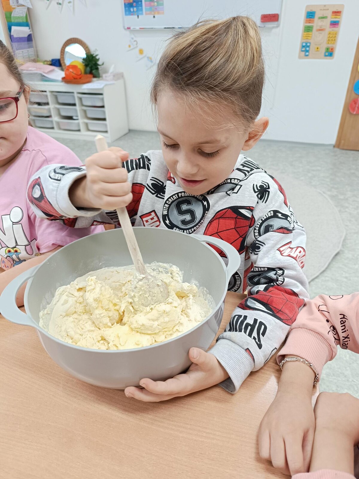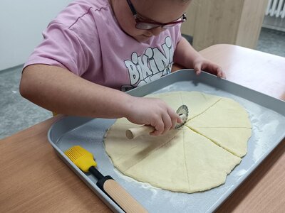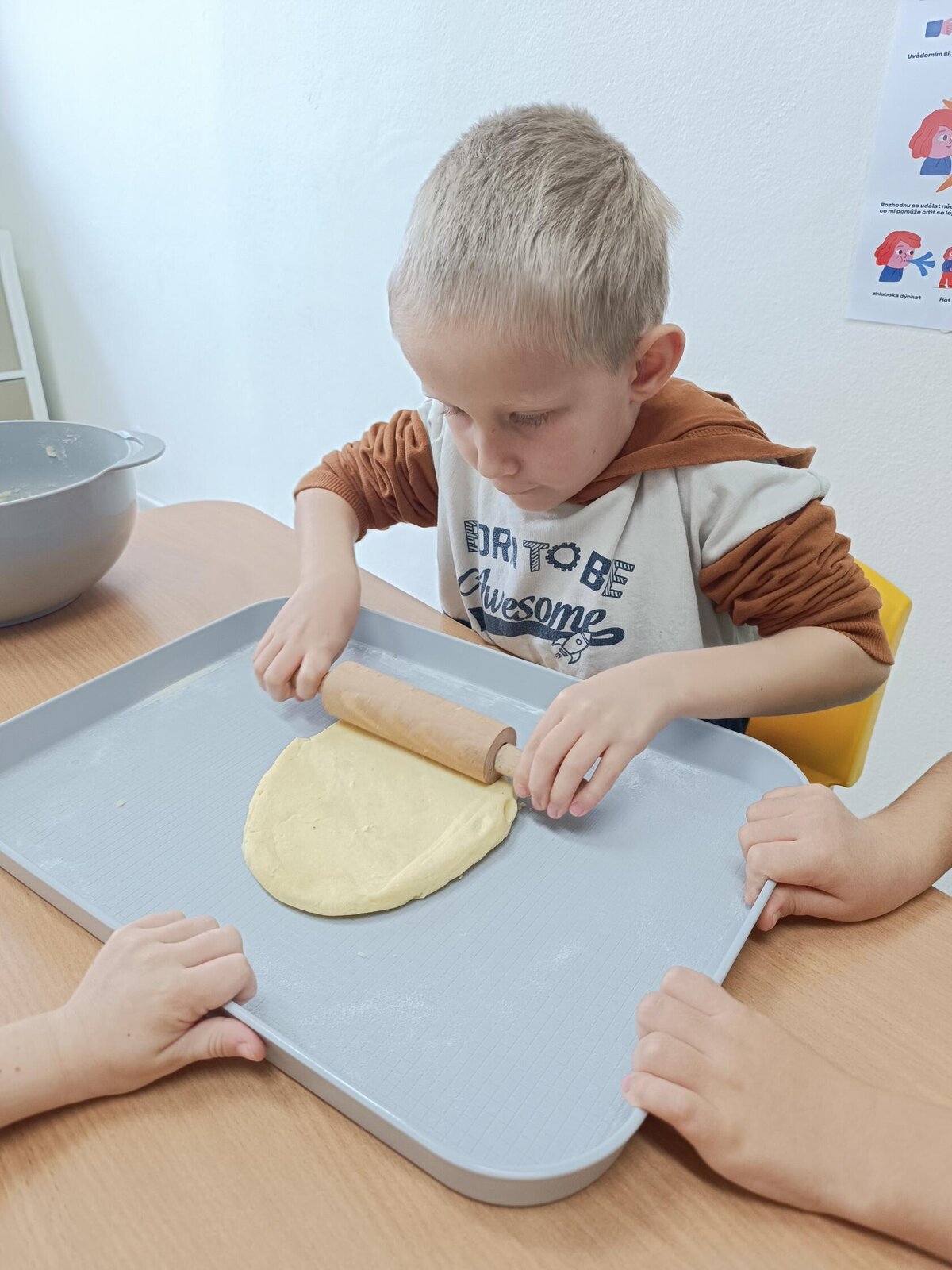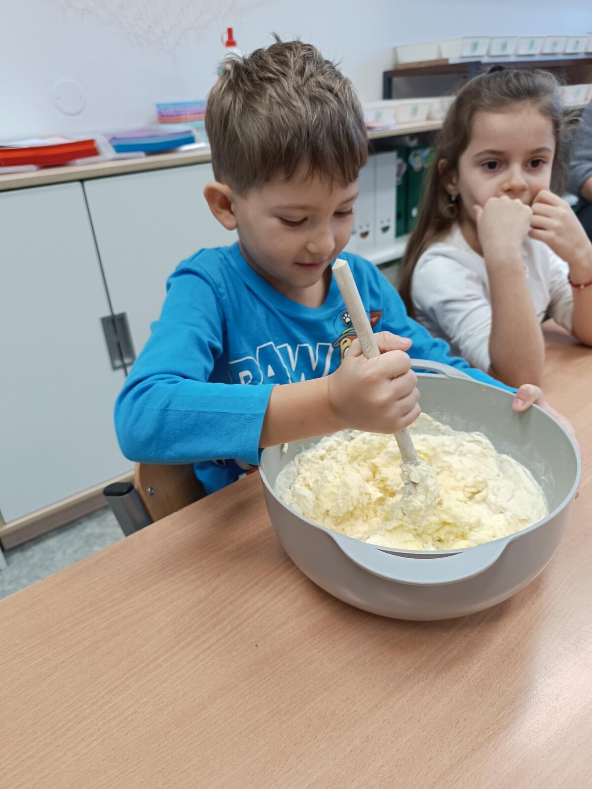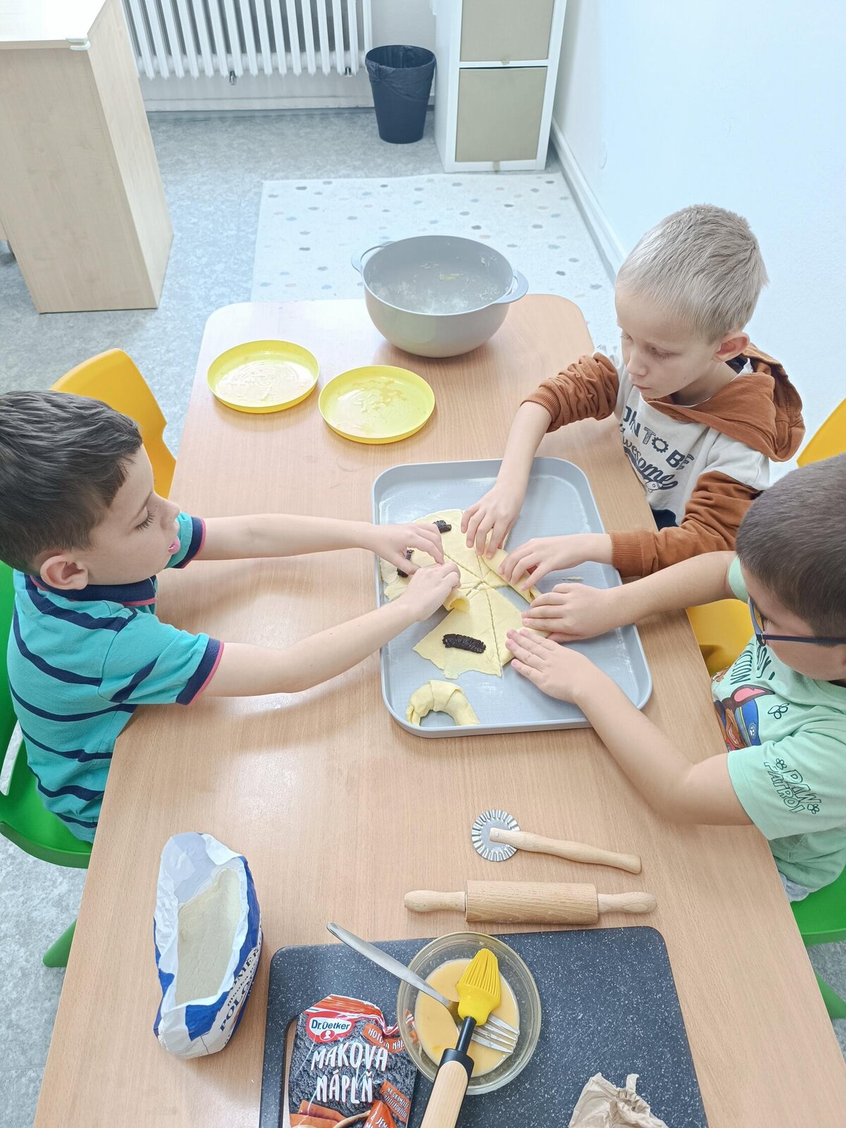 Společně jsme podle fotoreceptu umíchali těsto a pak z něj vytvořili makové rohlíčky.