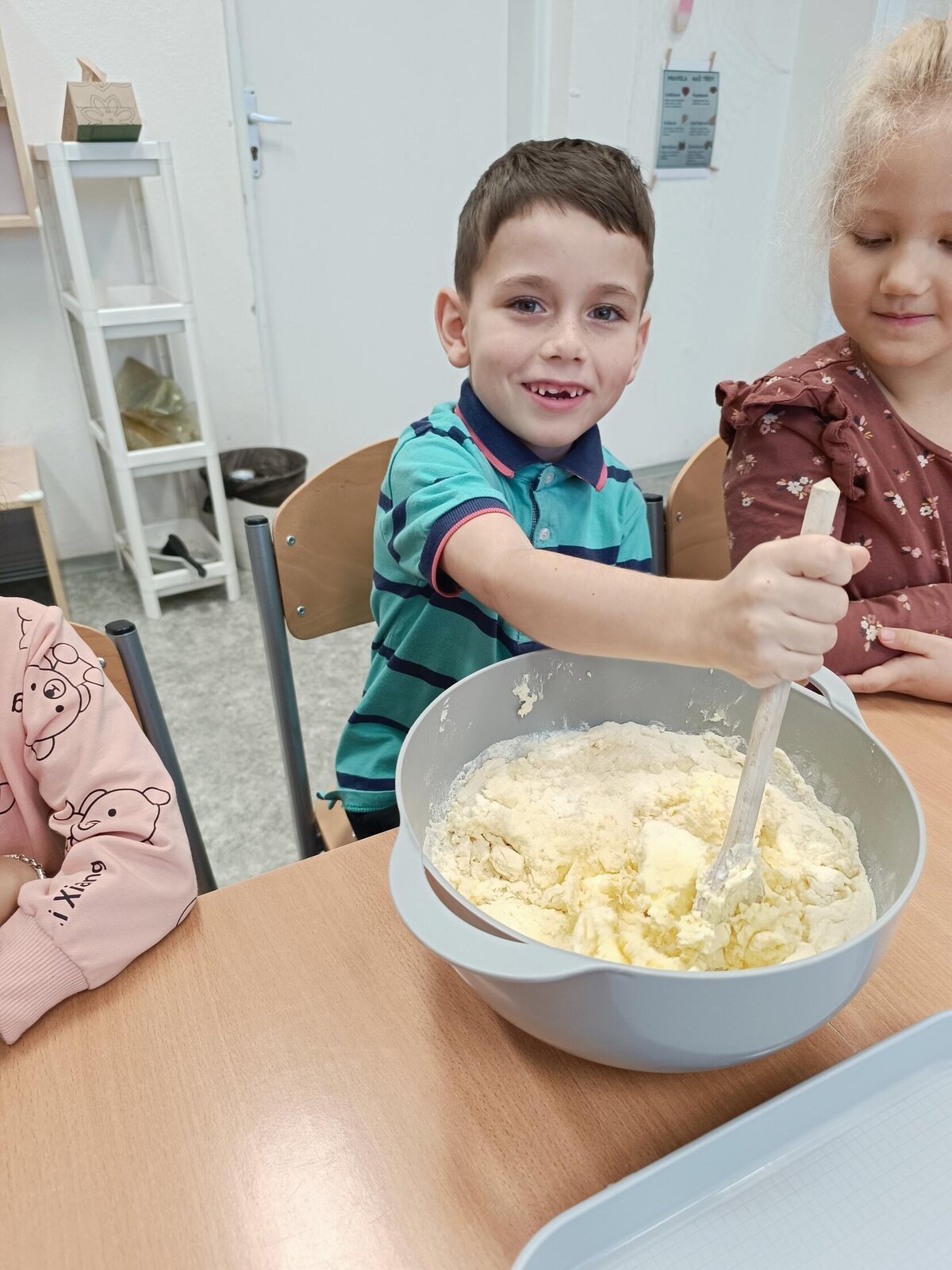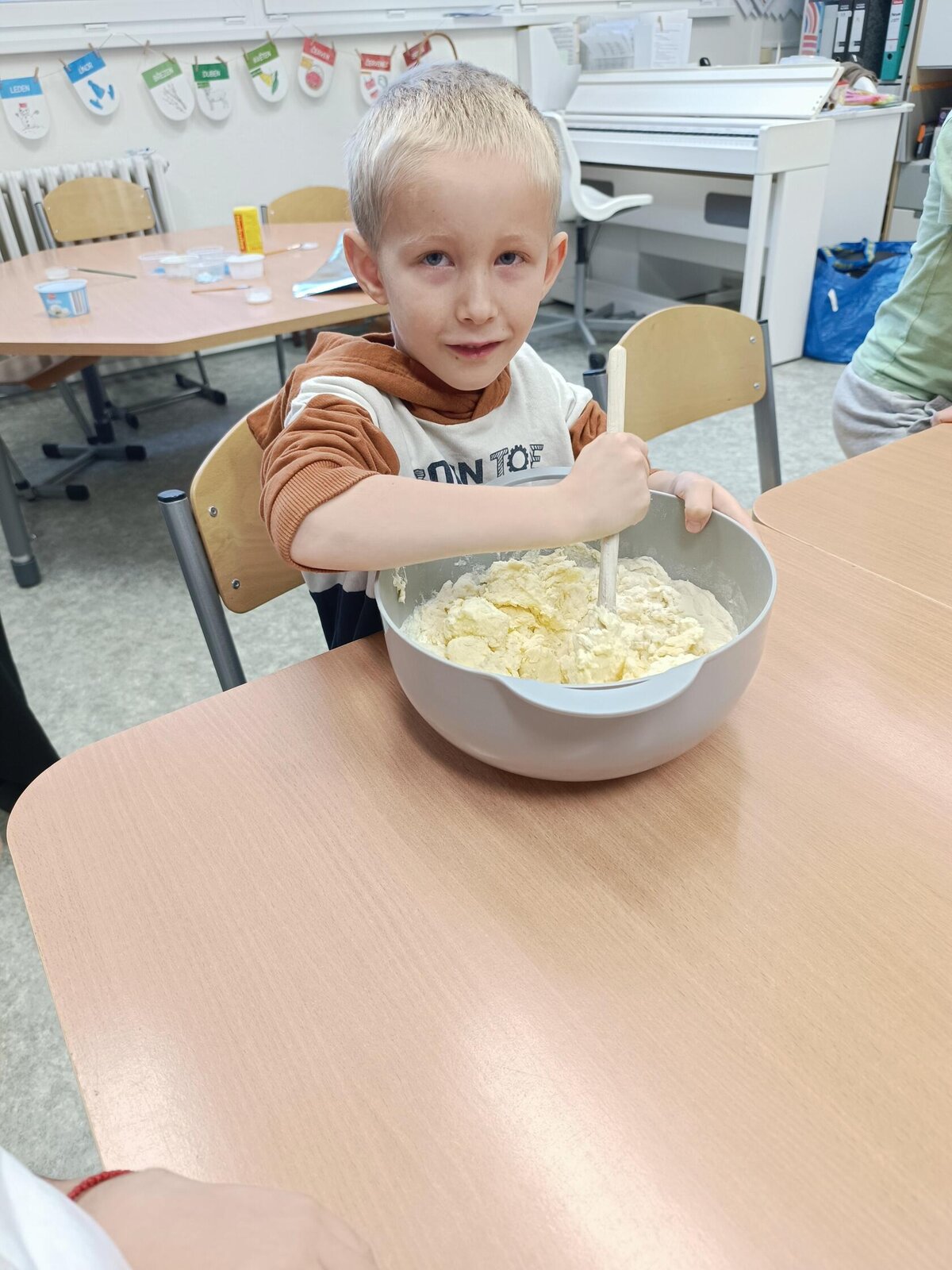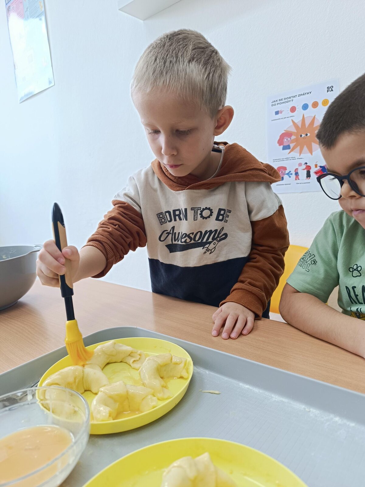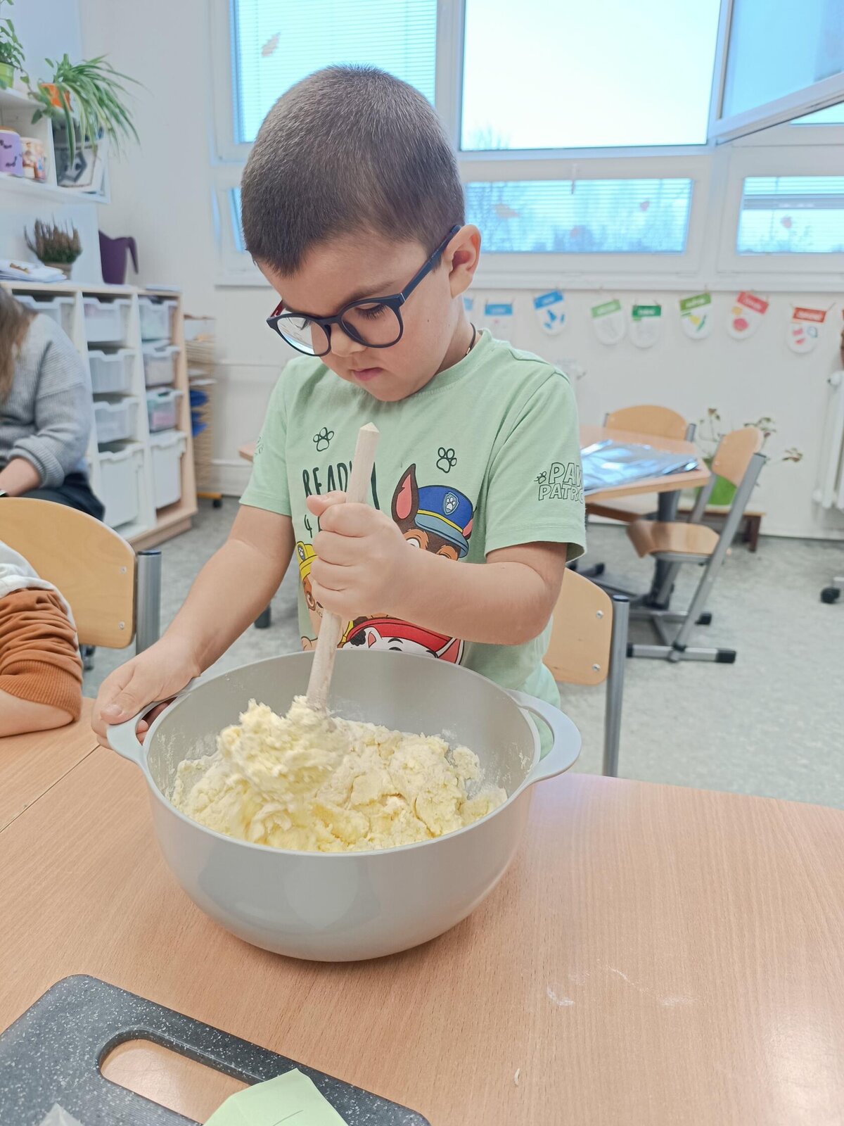 Společně jsme podle fotoreceptu umíchali těsto a pak z něj vytvořili makové rohlíčky.