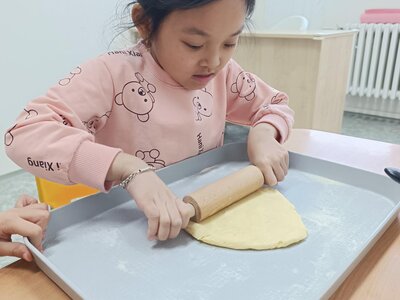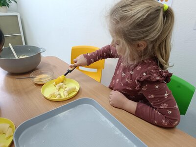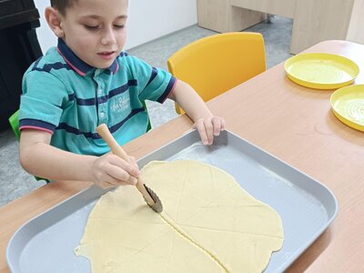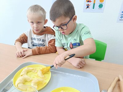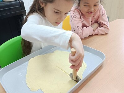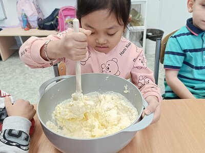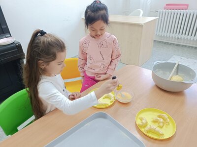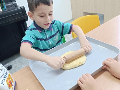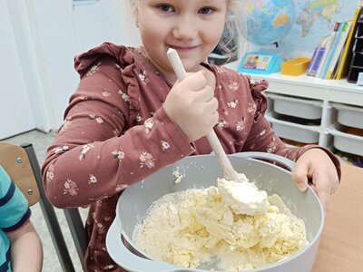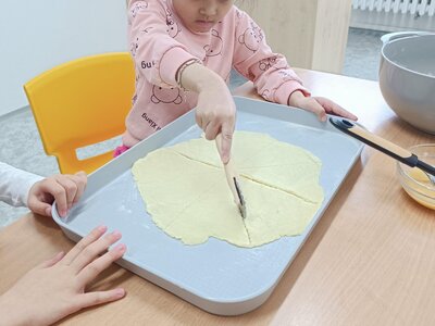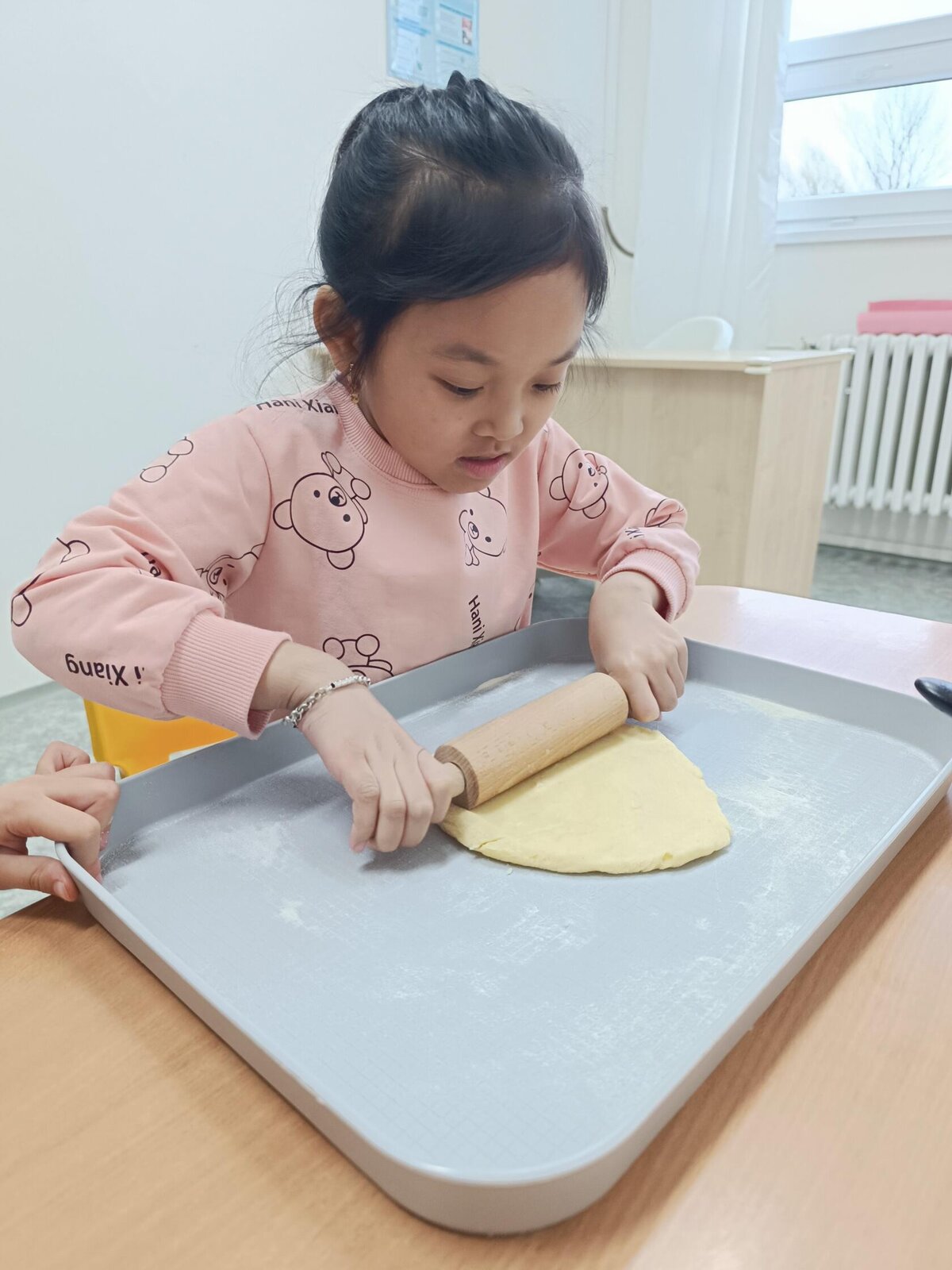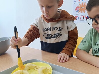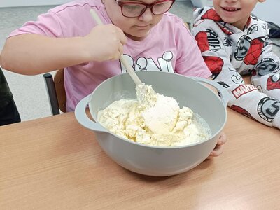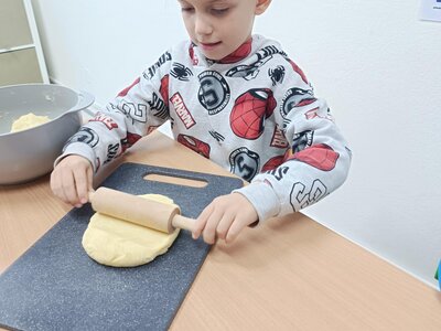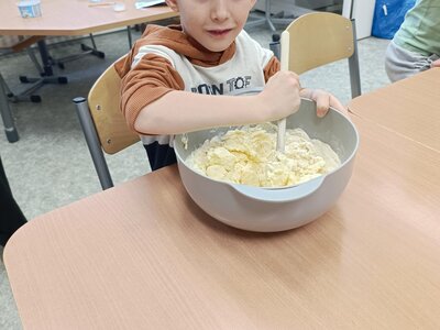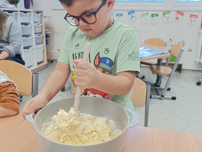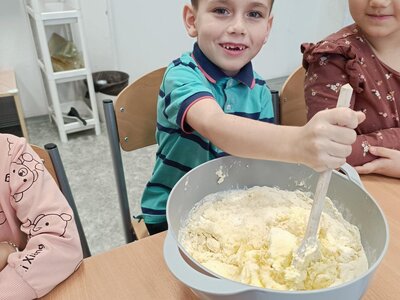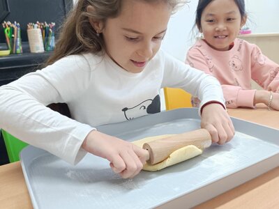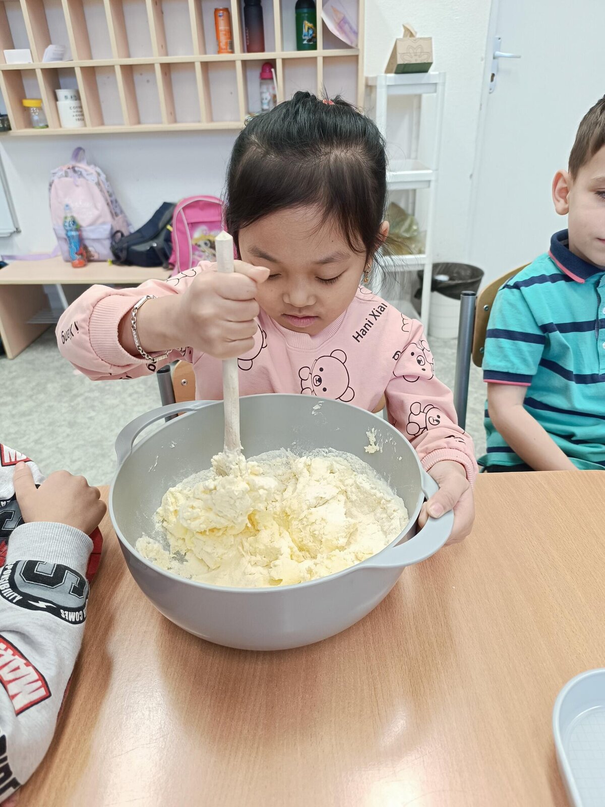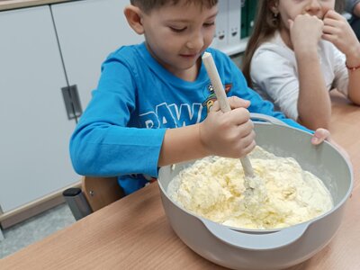 Společně jsme podle fotoreceptu umíchali těsto a pak z něj vytvořili makové rohlíčky.