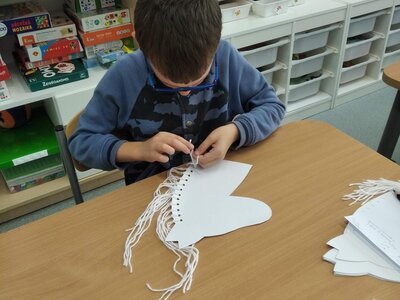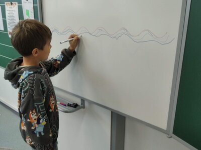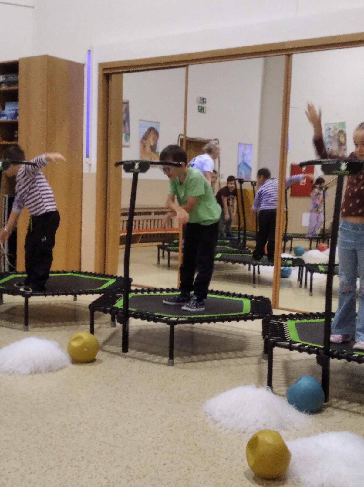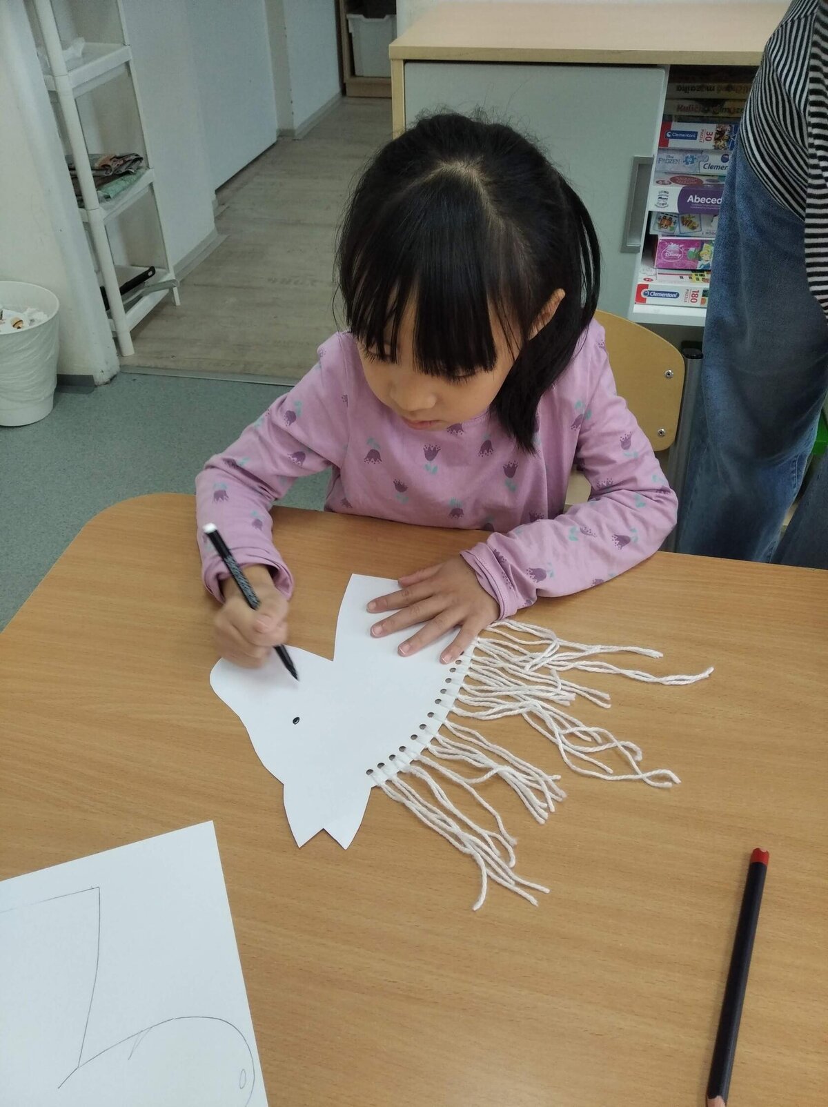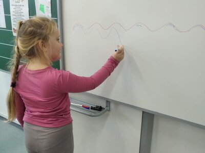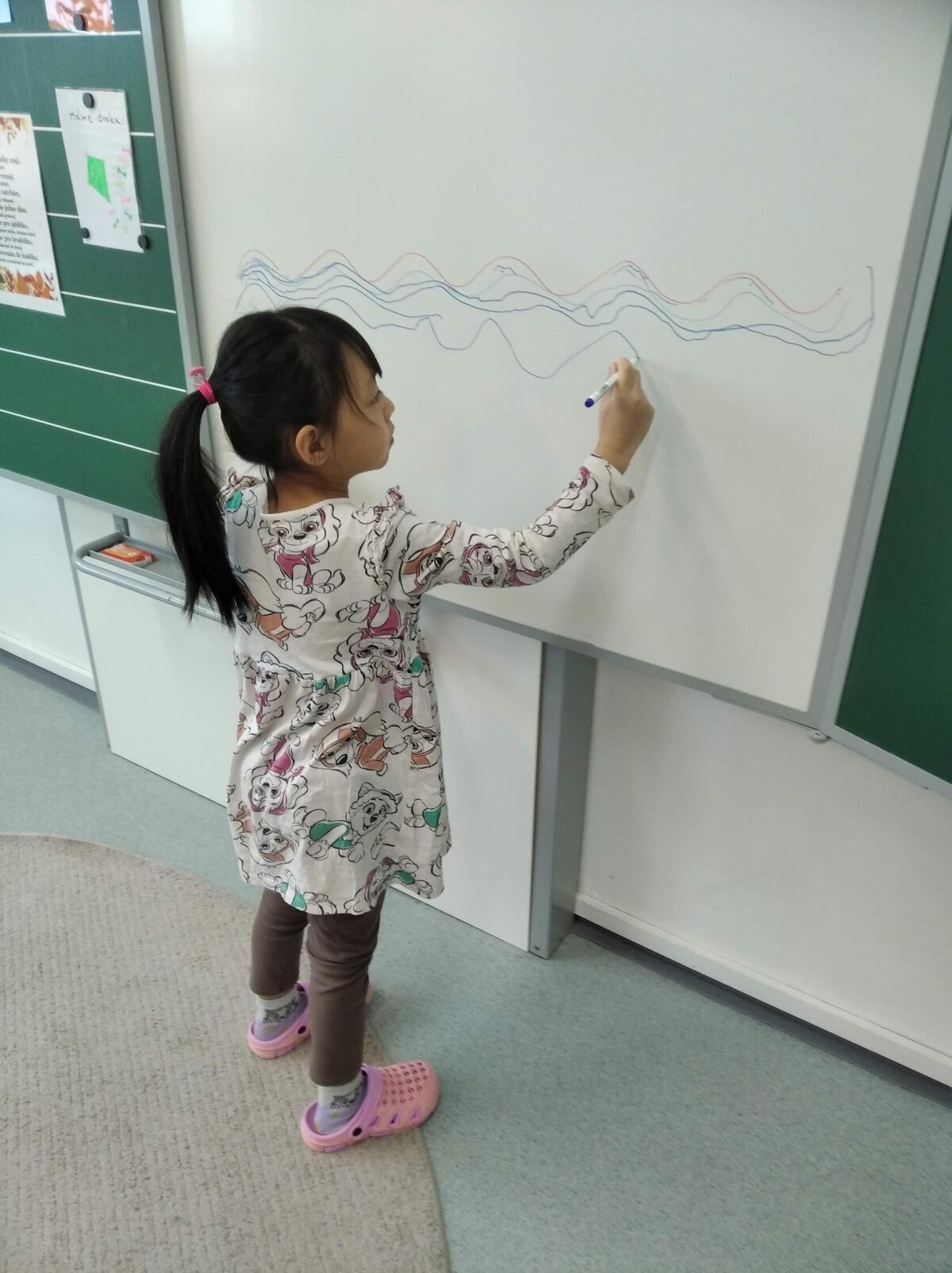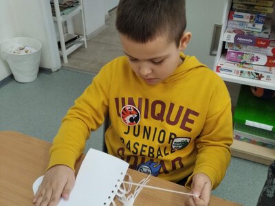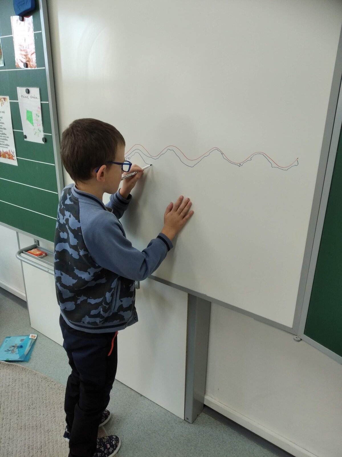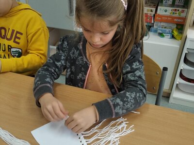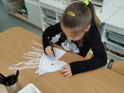 Věnovali jsme se matematickým pojmům, jako je kratší x delší a širší x užší. Také se děti mezi sebou řadily od nejmenšího po největšího. Rozvíjeli jsme řeč, učili se nadřazené a podřazené pojmy a procvičovali porozumění dějové posloupnosti. Zrakové vnímání jsme trénovali dokreslováním částí, které chybí a popisem nesmyslných obrázků. Ve sluchovém vnímání jsme trénovali slabiky, první hlásky a rozpoznávali rýmy. Grafomotoriku jsme procvičovali na velké tabuli, na stíracích tabulkách a na papírech. Nezapomněli jsme ani na prostorové vnímání - kde jsme se věnovali předložkovým vazbám a pojmům nahoře x dole a vlevo x vpravo.