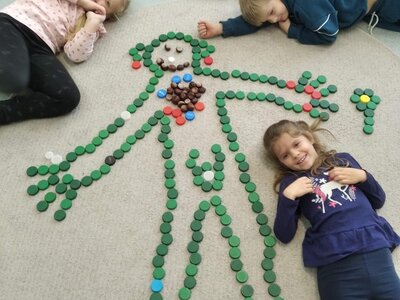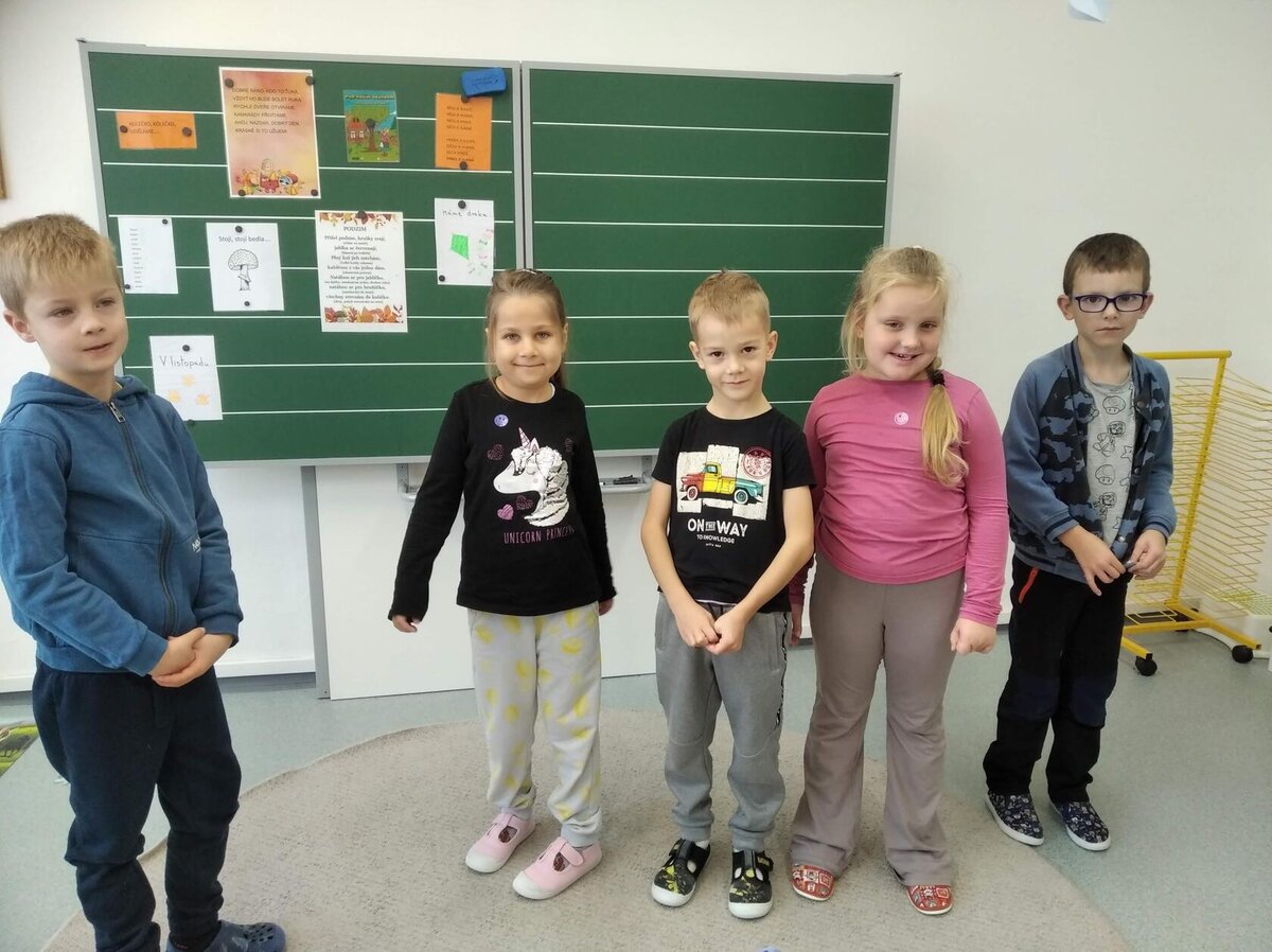 V tomto měsíci jsme se věnovali rodině, městu ve kterém žijeme, svatému Martinovi a lidskému tělu. Všichni známe své jméno včetně příjmení, jména členů rodiny a víme, kde s rodinou bydlíme. Víme, kdo byl svatý Martin, jaké měl vlastnosti a jaké pranostiky se k němu pojí. Umíme pojmenovat čáti lidského těla, z čeho je tvořeno a známe jeho důležité orgány. Také jsme si povídali o tom jak rosteme a co je dobré dělat pro své zdraví.