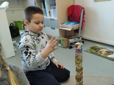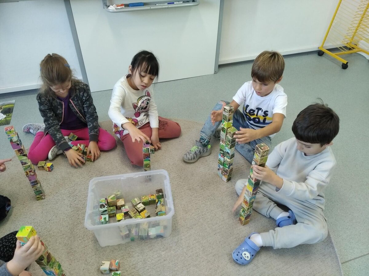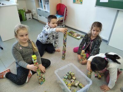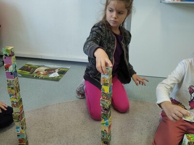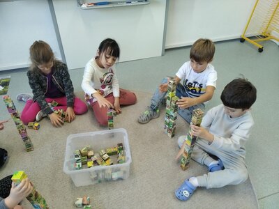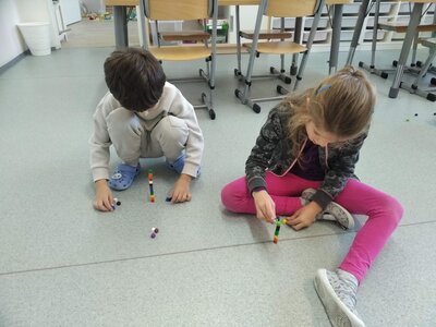 Pletli jsme koním hřívy, skládali komíny z kostek a z malých kostiček, tvořili lidská těla, skládali kostry a tvořili z barevných tyček.