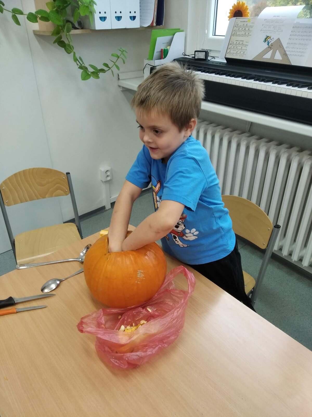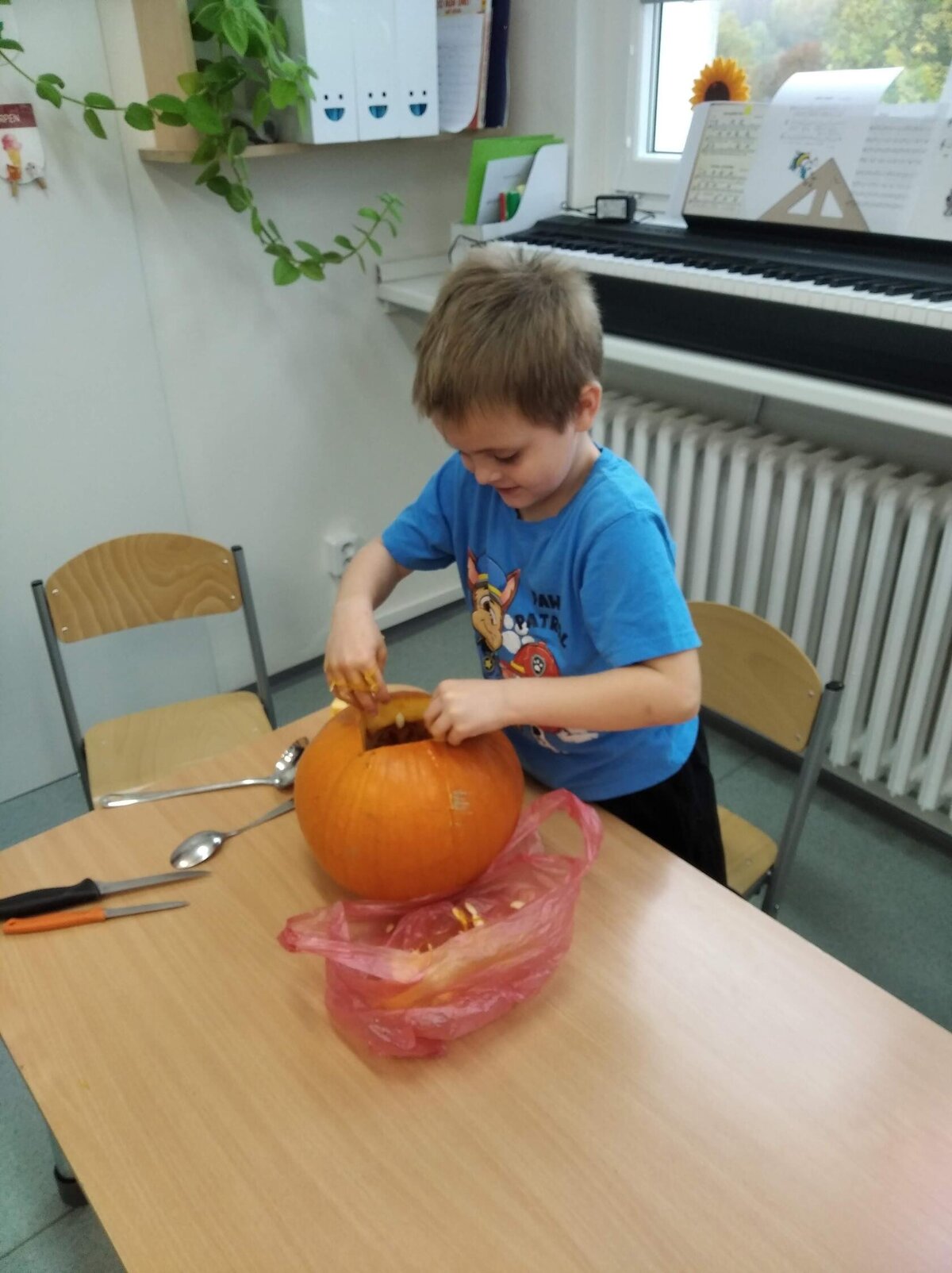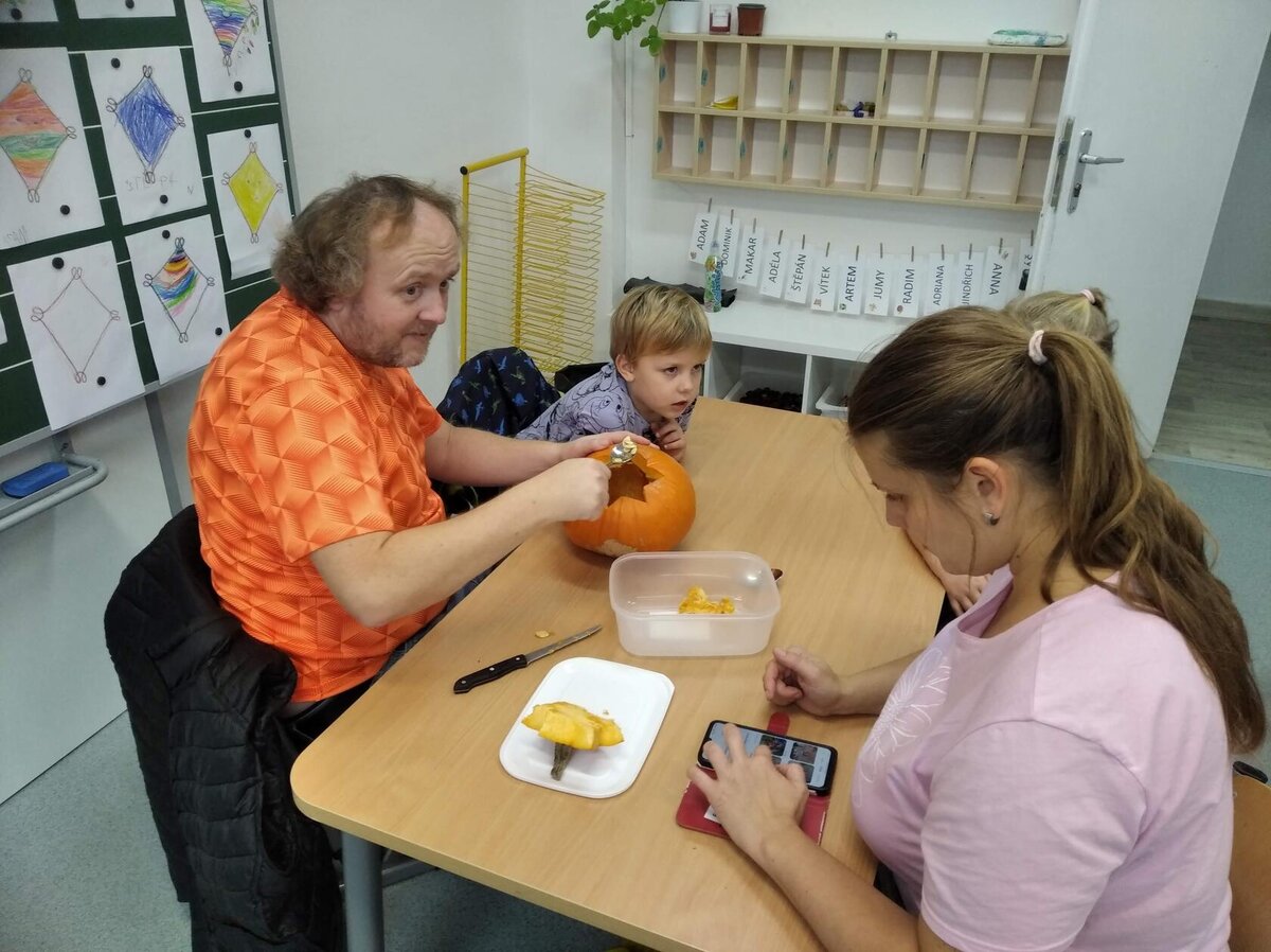 Ve čtvrtek v půl čtvrté jsme se sešli s rodiči a dětmi v naší třídě, abychom se pustili do vyřezávání podzimních dýní. Užili jsme si příjemné a tvořivé společné odpoledne, za které děkujeme.